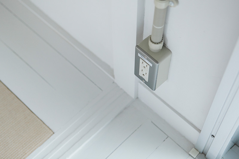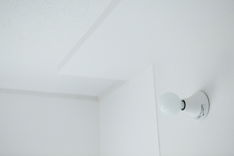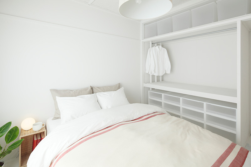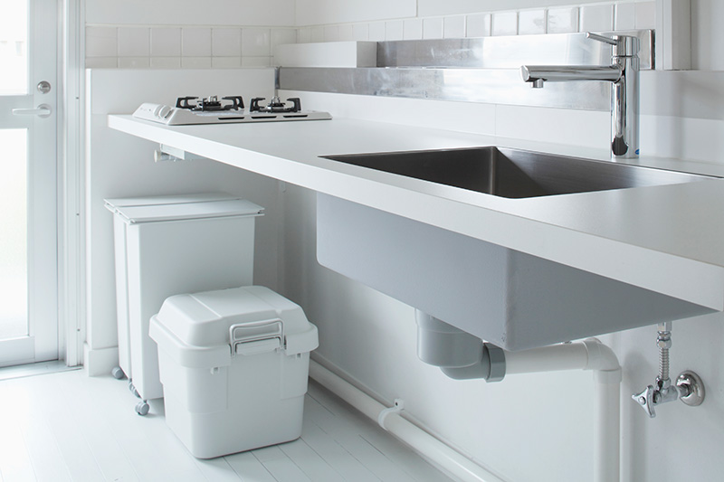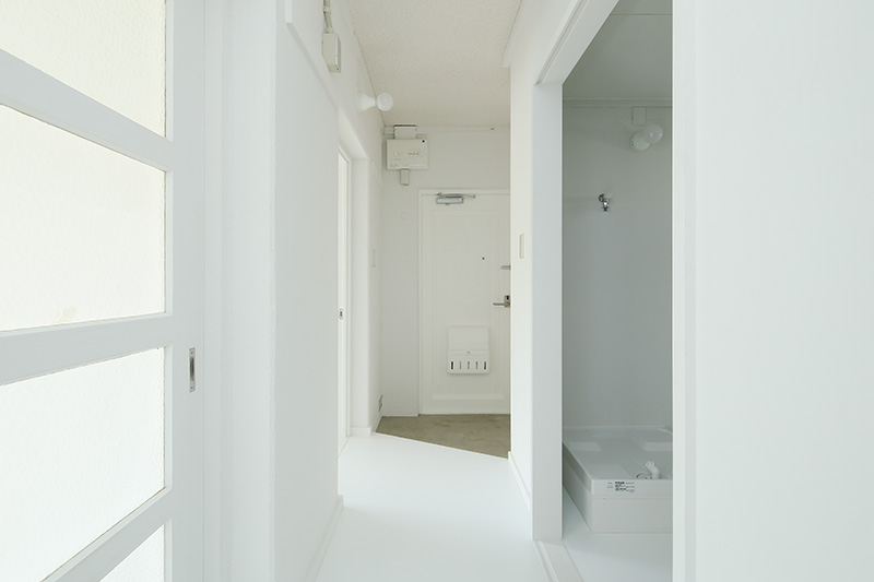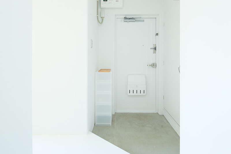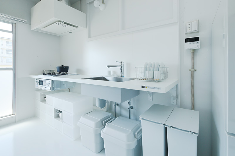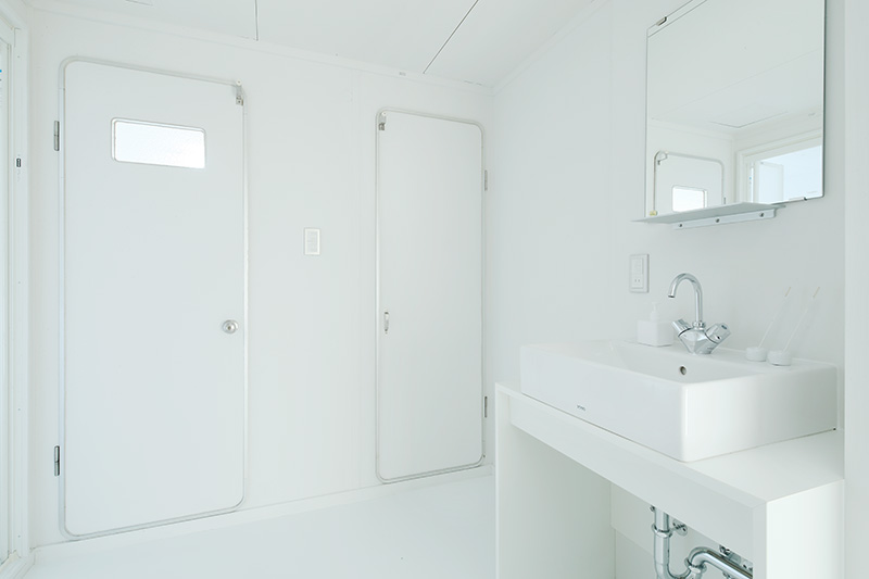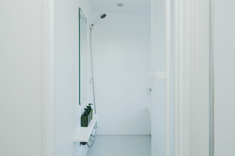 洗面台の隣には収納が。タオルや洗剤などをすっきりと収められます。