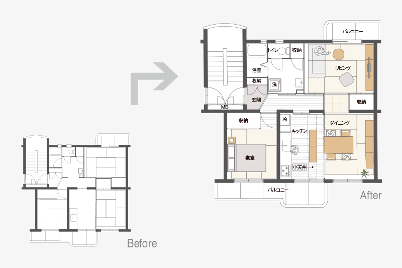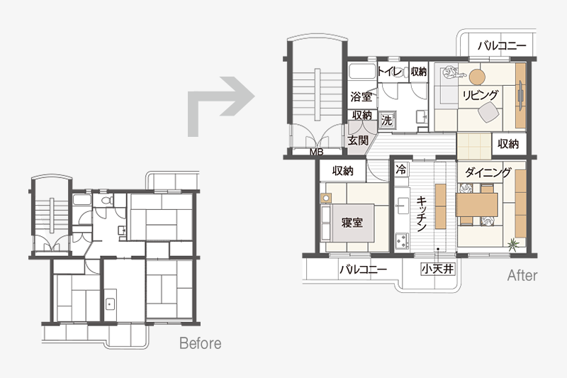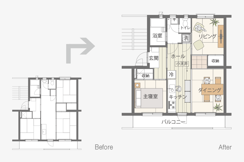 ふすまがないことで、リビングとダイニングがゆるやかにつながります。