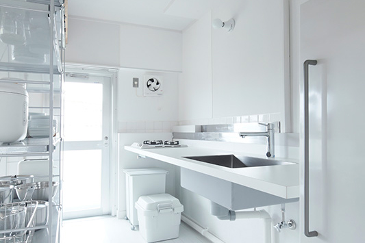 南側の持出しキッチン。光と風を感じながら気持ちよく料理ができます。