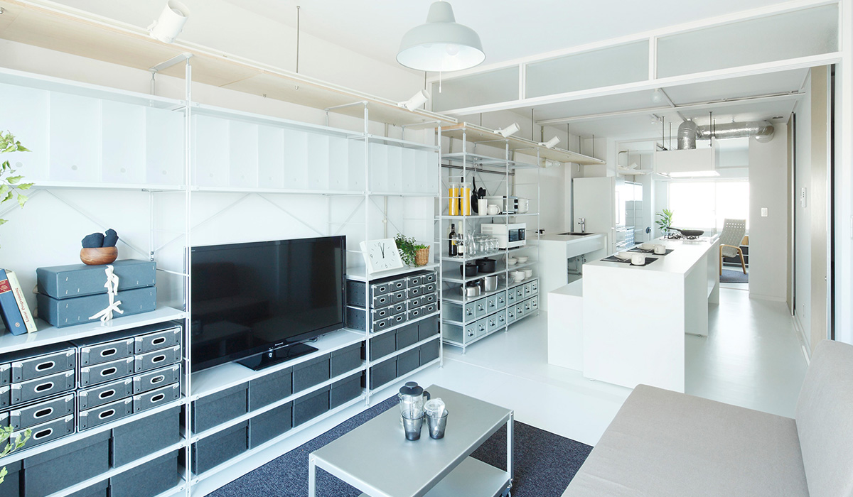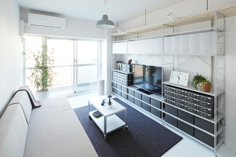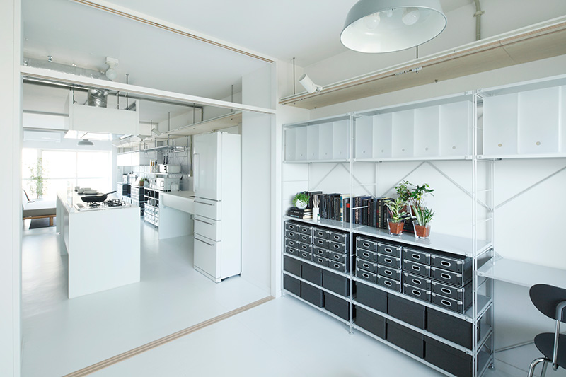 縦に広がる大きな空間。 軽くて持ち運びのしやすい段ボールふすまを使って、簡単に間取りを変えることができます。