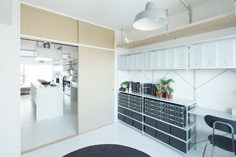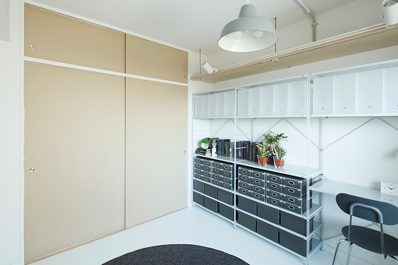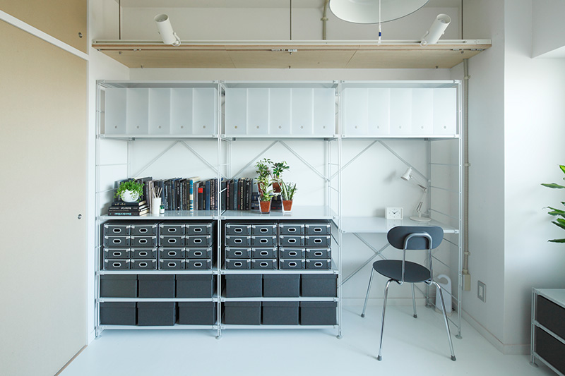 段ボールふすまで仕切れば、プライベートが保たれた書斎のような使い方も。