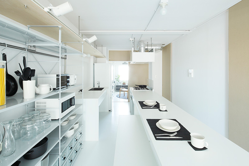 部屋の中心にあるキッチンで、料理をしながら家族の様子を見渡すことができます。