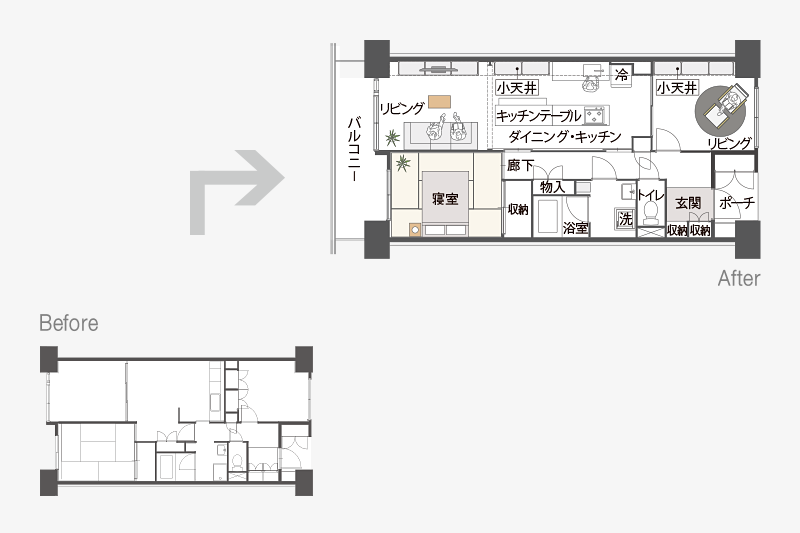 ふすまを取り外せば光と風の通り抜ける、大きなLDKに。