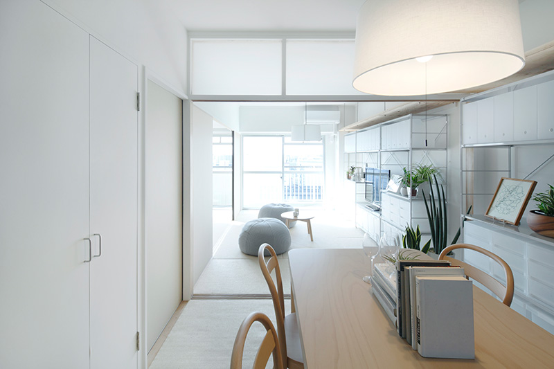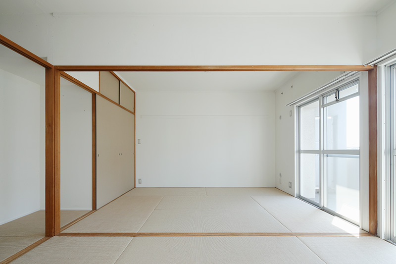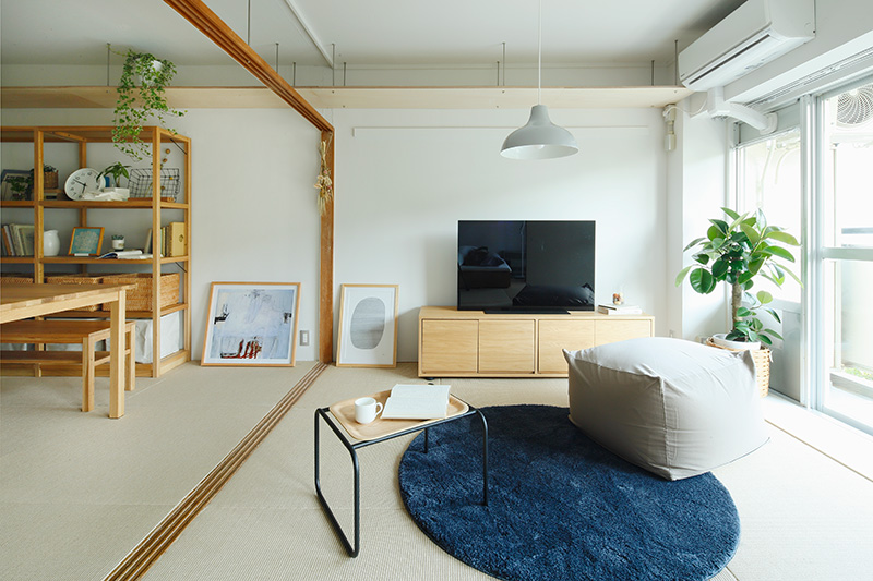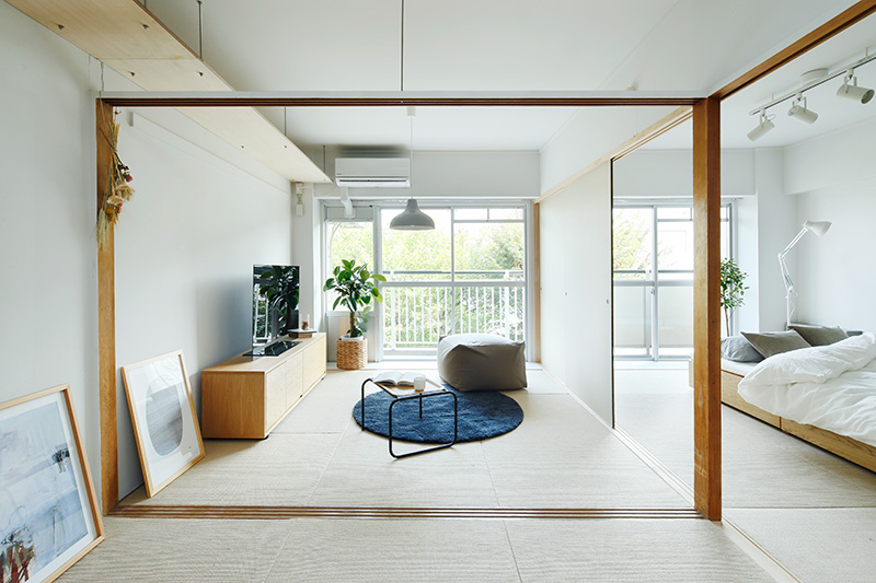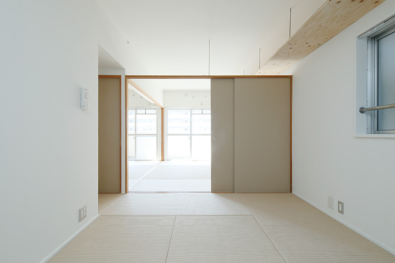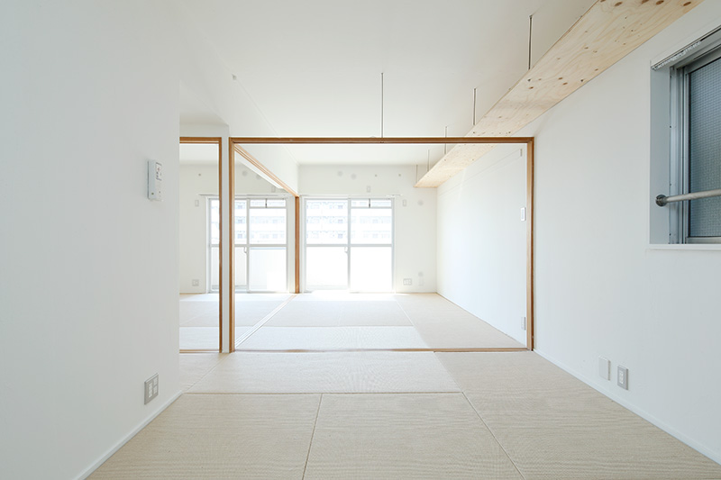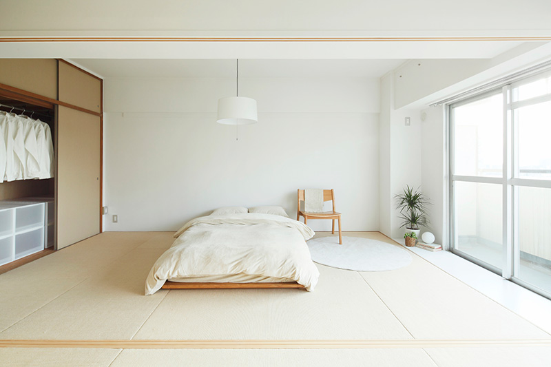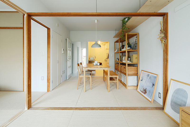 麻畳でリビングダイニングと寝室がゆるやかにつながります。