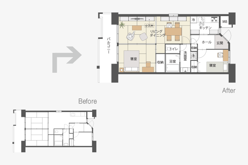 ふすまで仕切れば、それぞれの空間で心地よく過ごせます。