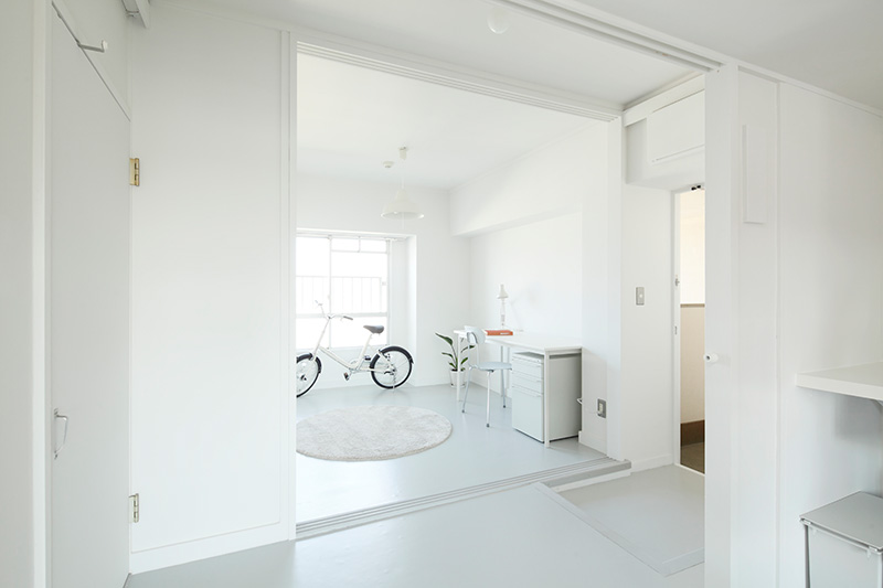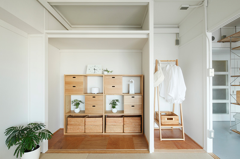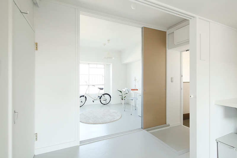 玄関のとなりにワークスペースを設けました。ふすまを開ければ玄関と一体で広く使うことができます。