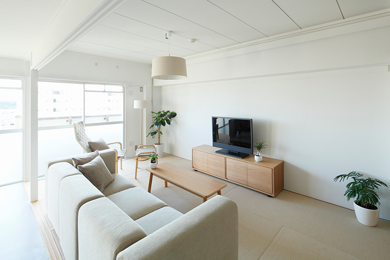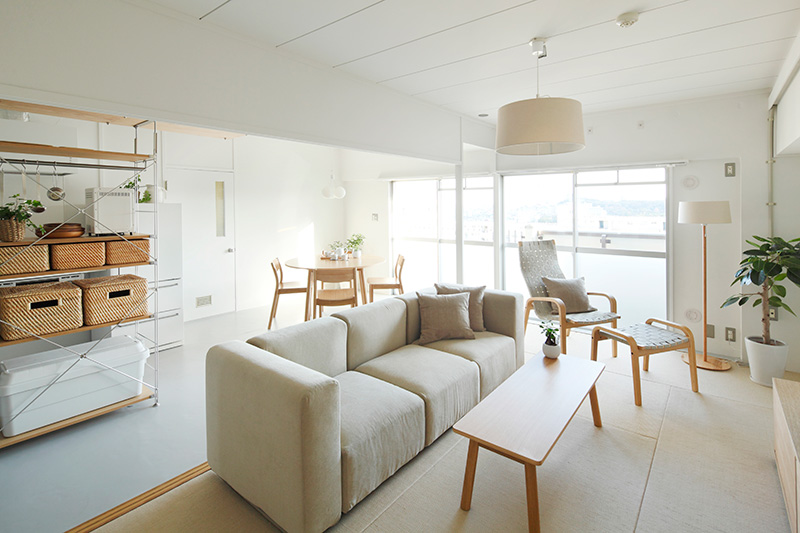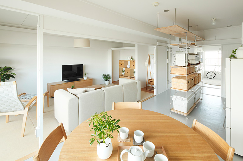 光が家の奥まで入りこむ、開放的なLDK。別々のことをしていても、お互いの気配を感じられます。