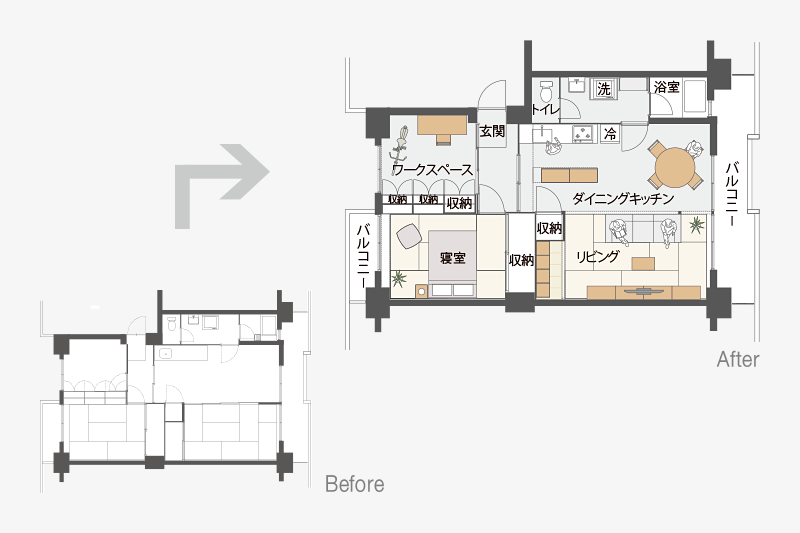 既存の大きな収納をそのまま生かしました。