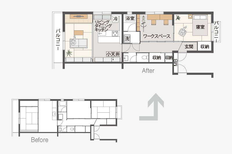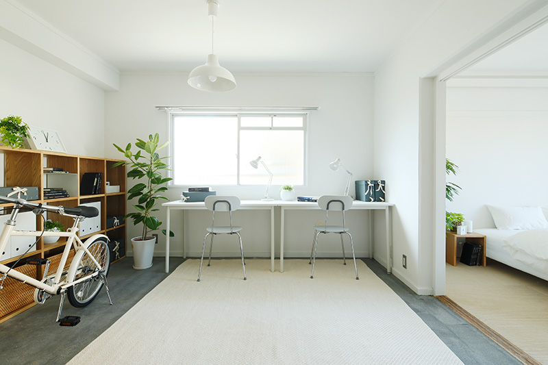 寝室とリビングを入れ替えれば、玄関側を仕事空間、奥側がプライベート空間に。