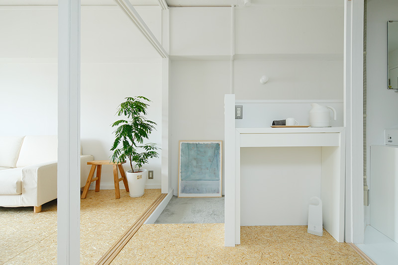階段を上がると目の前には明るい開放的なリビングが広がります。2階にもお湯を沸かしてお茶が飲めるようにミニカウンターを設けました。