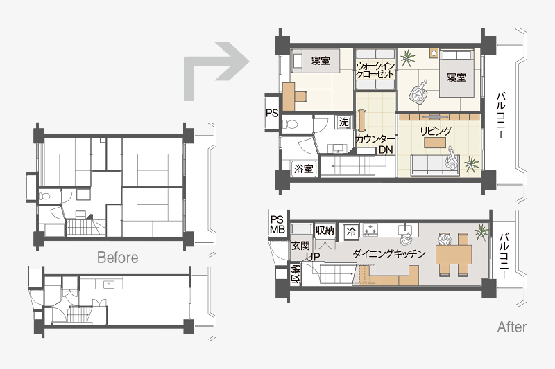 メゾネット住戸に新たにスケルトン階段を設けました。