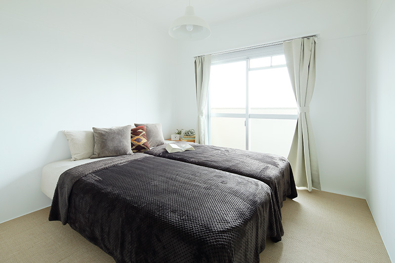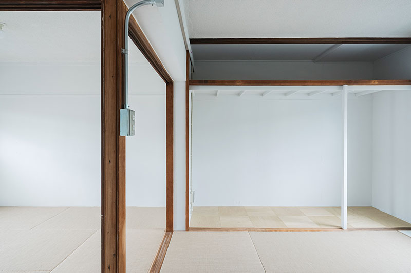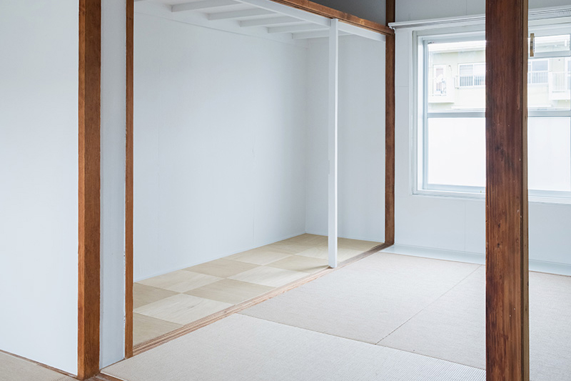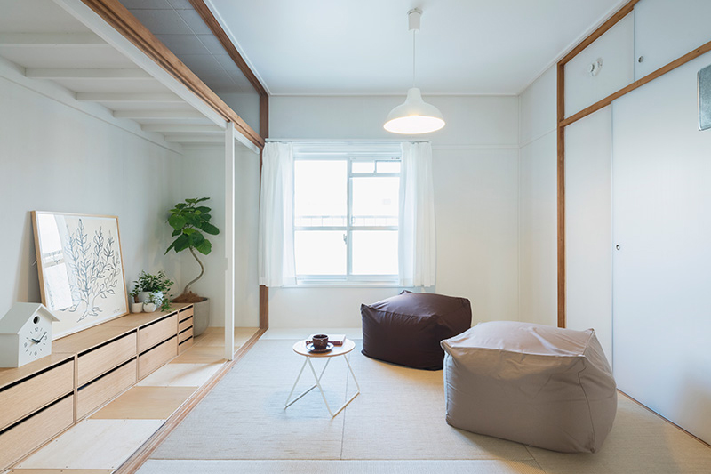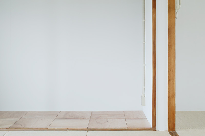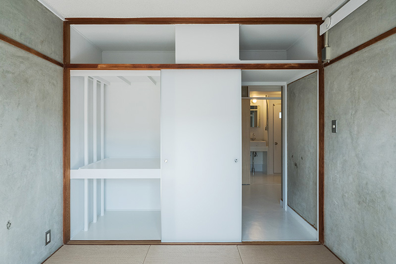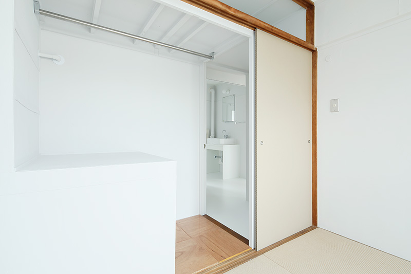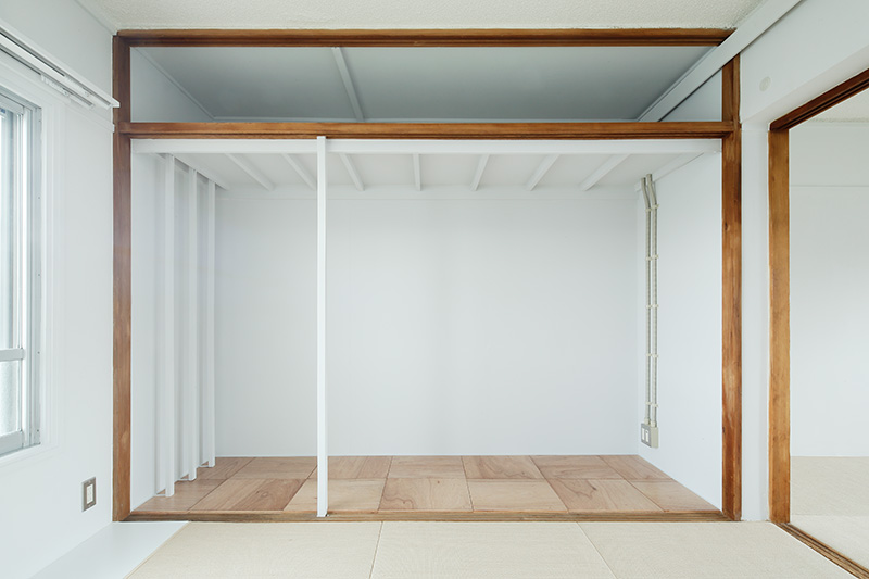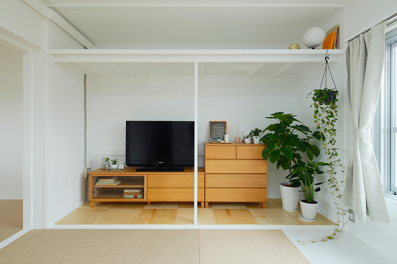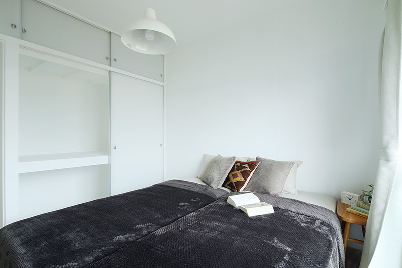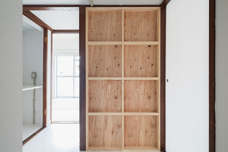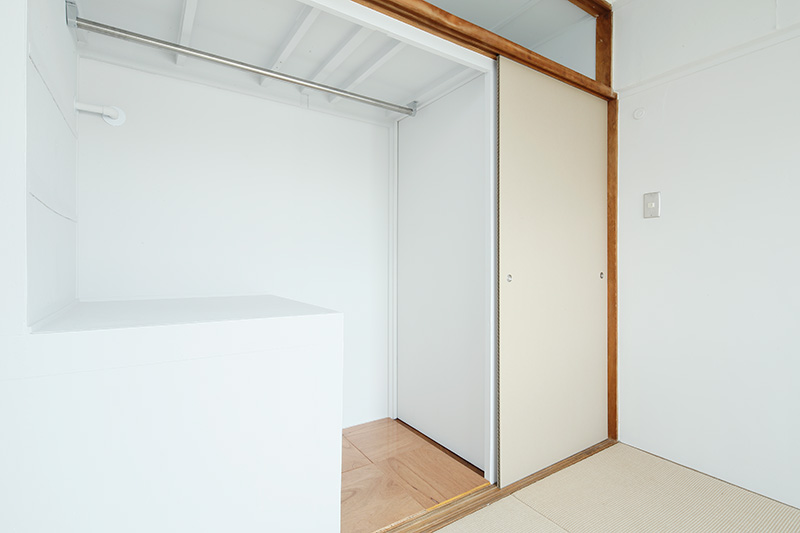 元押入部分は中棚を撤去することで、居室部分を広げました。カーテンを設置して、再び収納として利用することもできます。