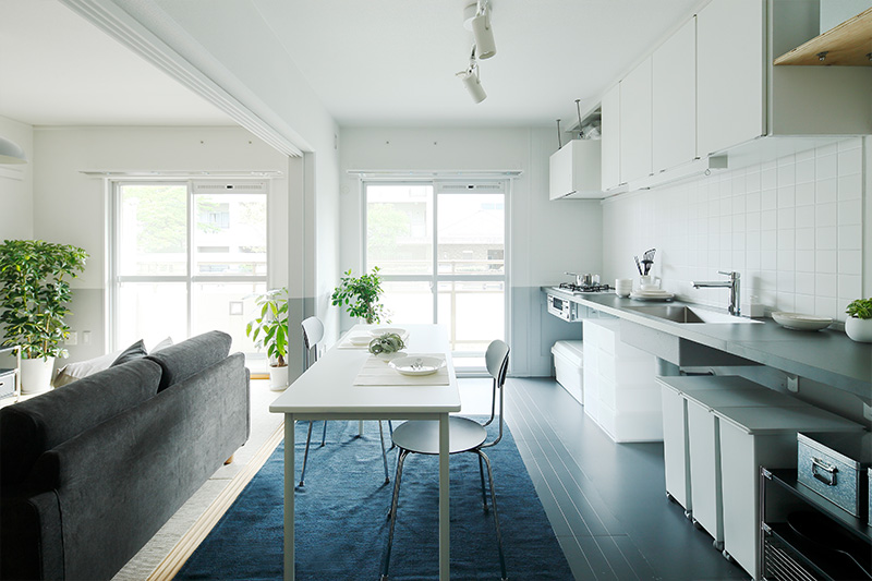 3.7mのロングカウンターキッチンが空間のアクセントに。