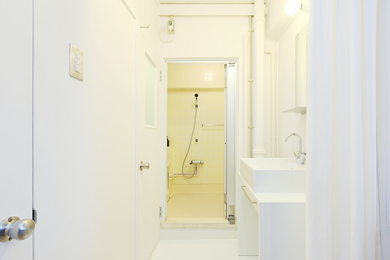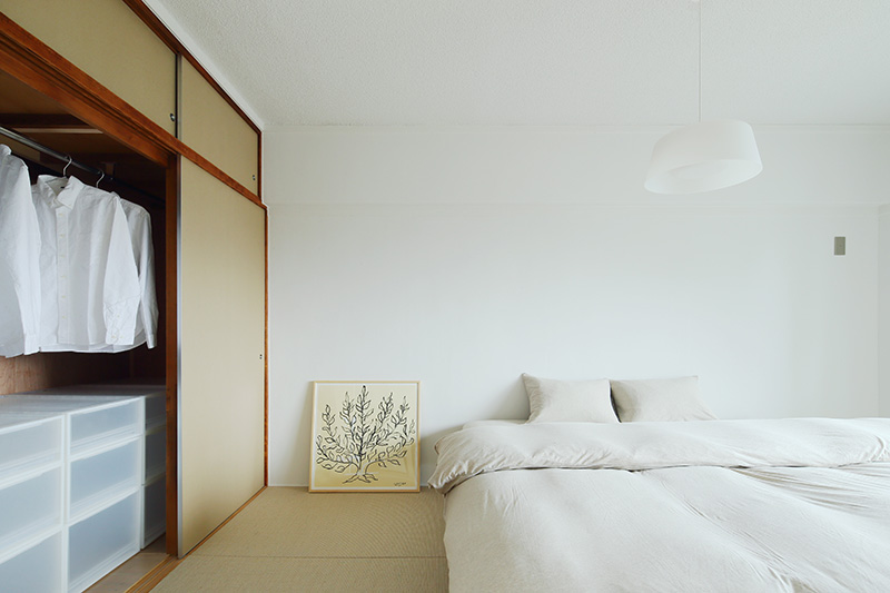 キッチンのすぐ横に窓のある明るいユーティリティスペースを設置しました。普段は見えないように半透明ふすまで閉じることができます。