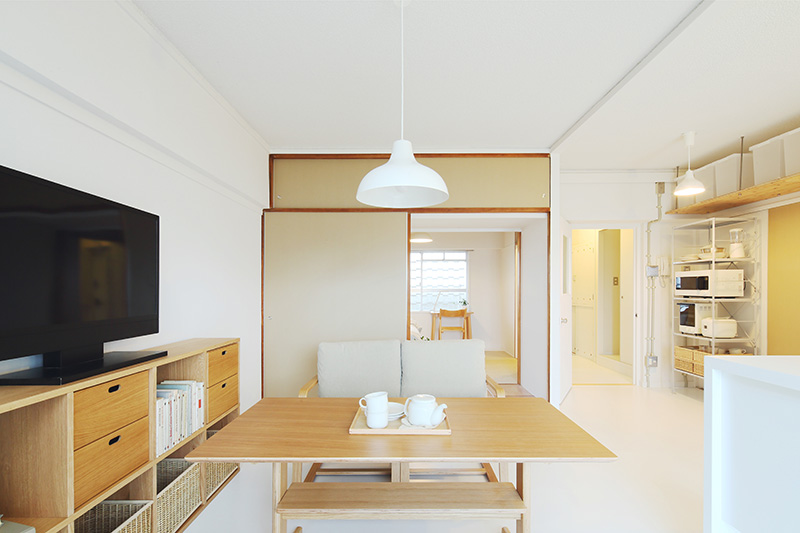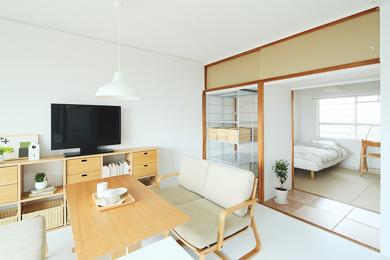 寝室とLDKの間のふすまを取り外せば、部屋全体に風が通り抜ける開放的なLDK空間にすることもできます。
