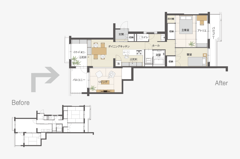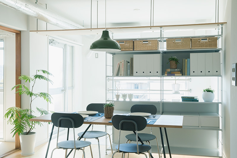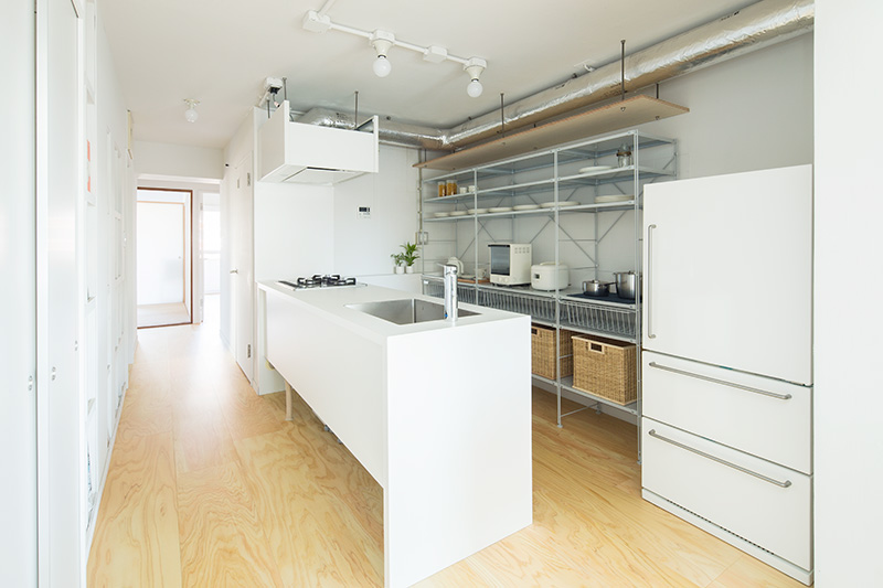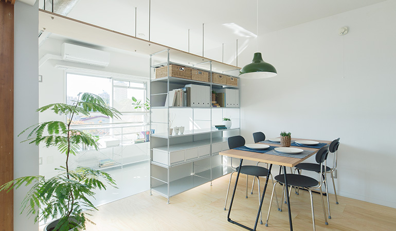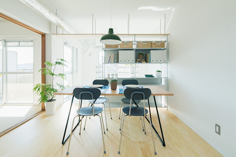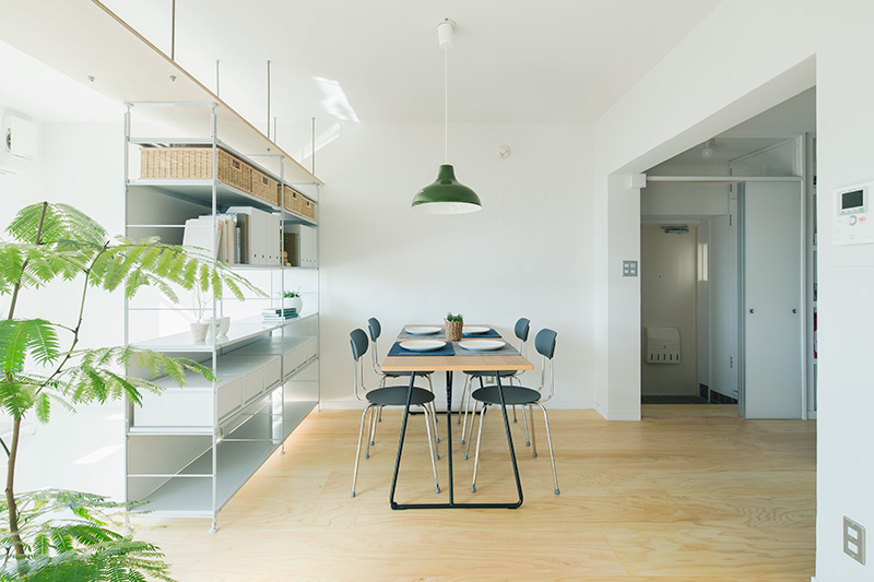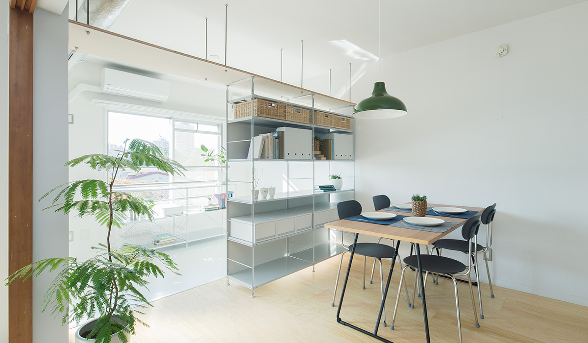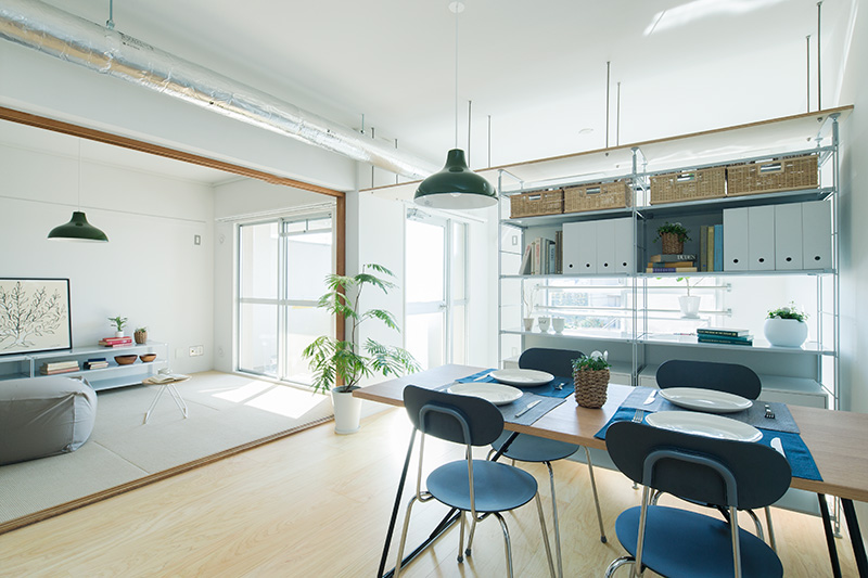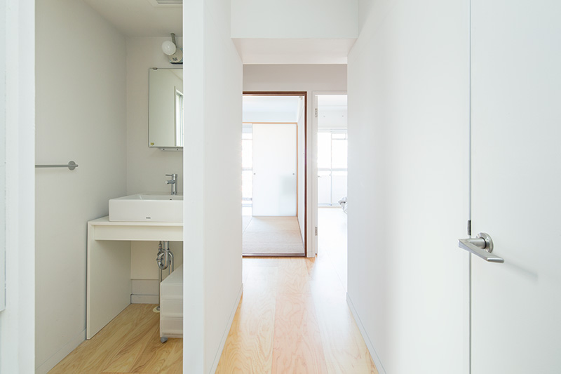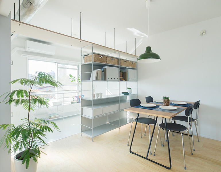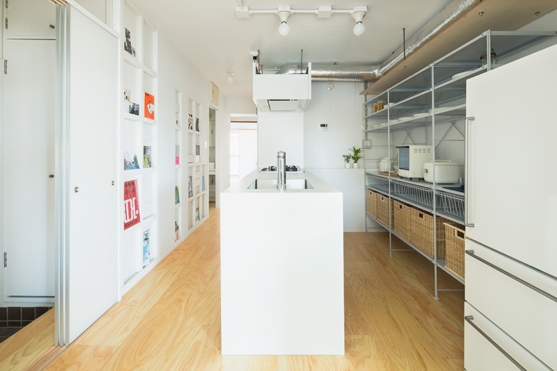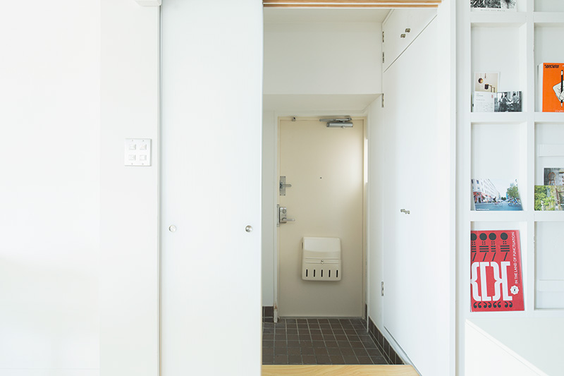広々としたファミリータイプの間取を生かし、住まいの中にアート空間をつくりました。廊下の壁を利用してギャラリースペースとし、和室は、空間の一部を仕切ってアトリエとしても使えるようにしました。