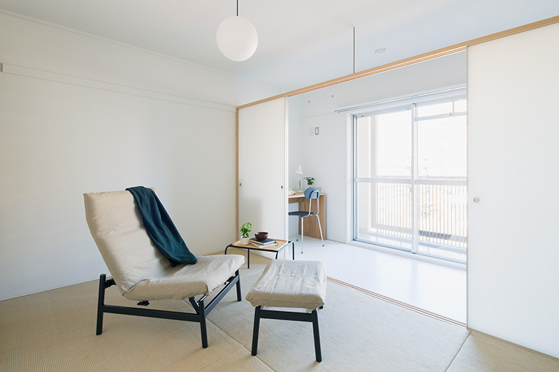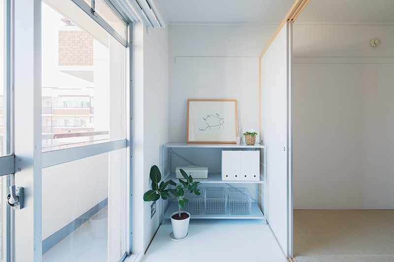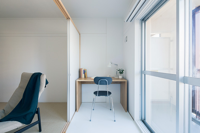寝室の一部を半透明ふすまで仕切って、アトリエとしても使えるようにしました。