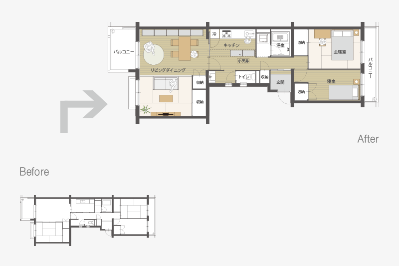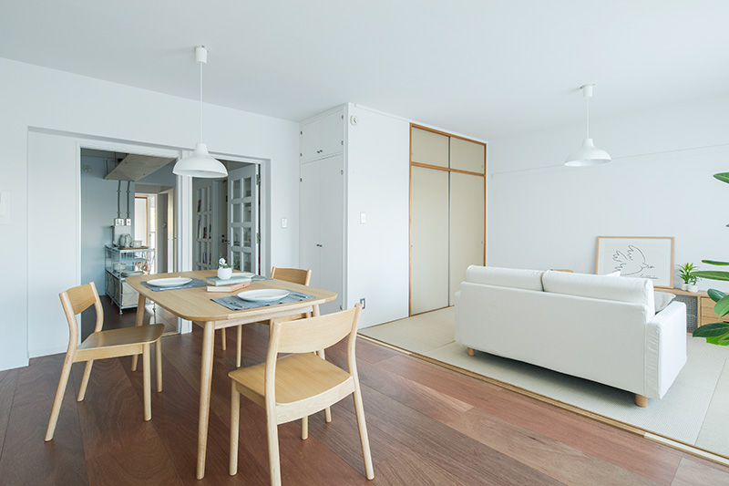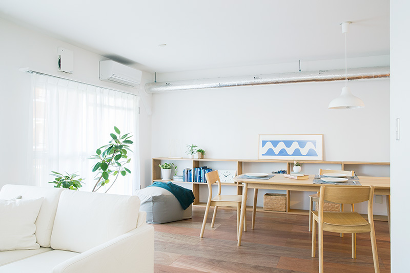 間口いっぱいに広がる、広々としたリビングダイニングです。