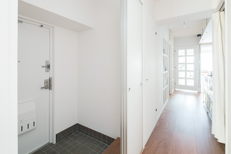 広々としたファミリータイプの間取りです。廊下の壁を利用してギャラリースペースとしました。廊下を抜けると、間口いっぱいに広がるリビングダイニングが現れます。