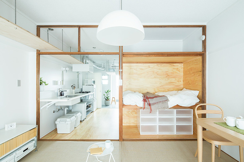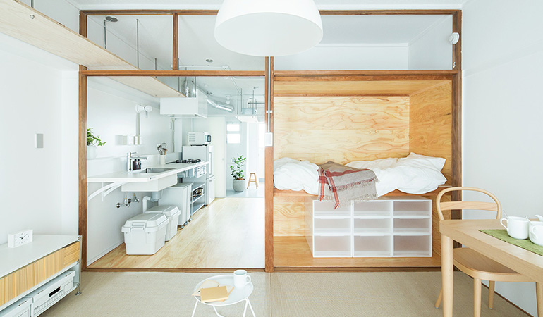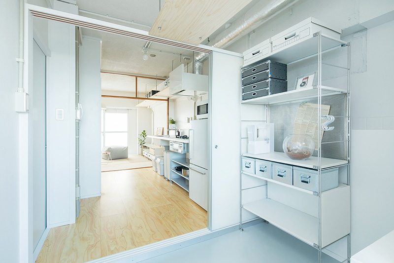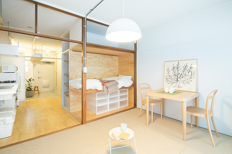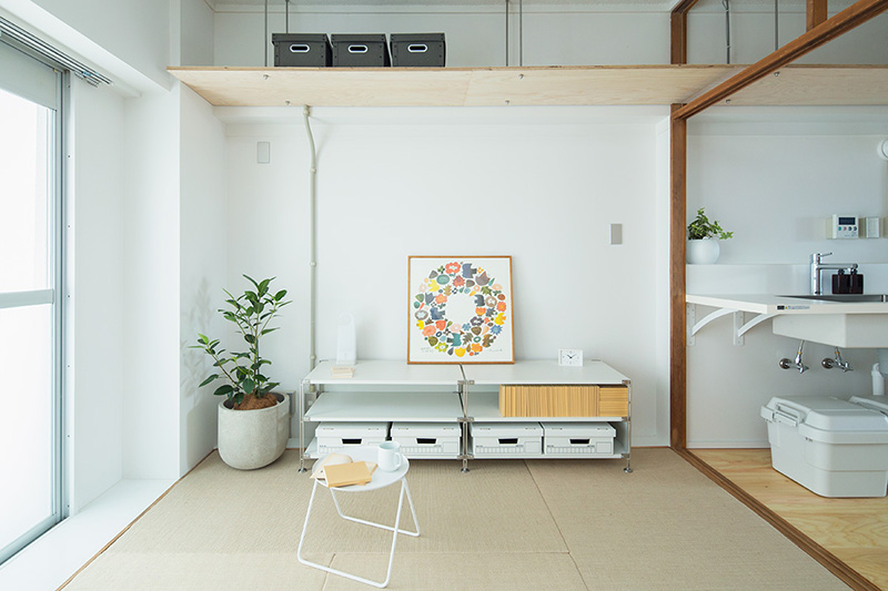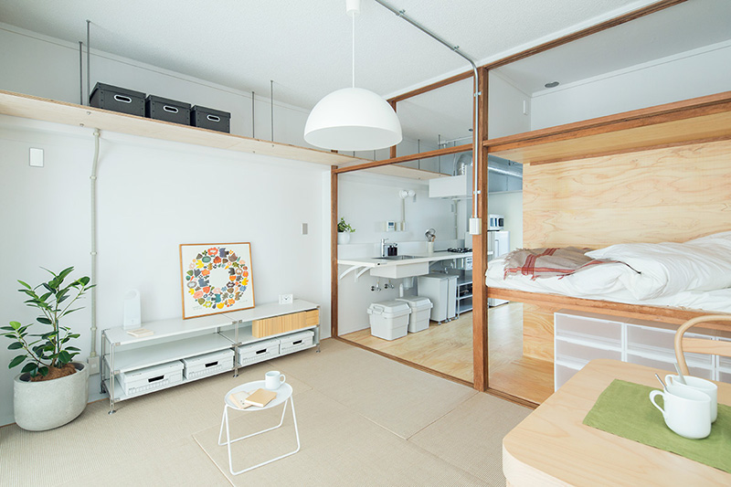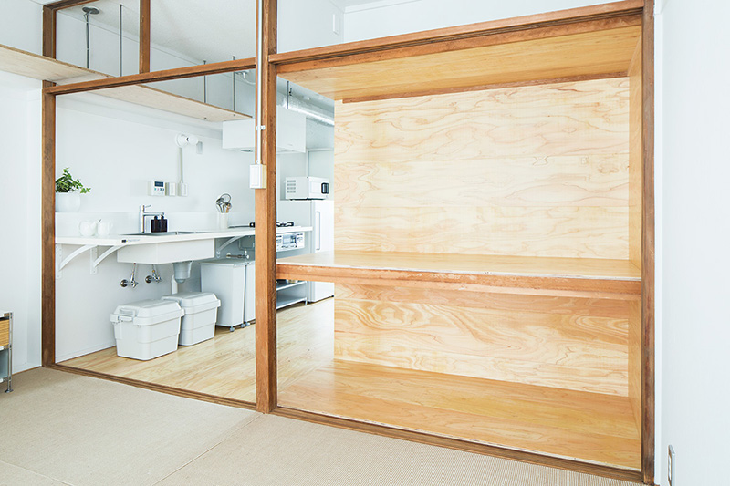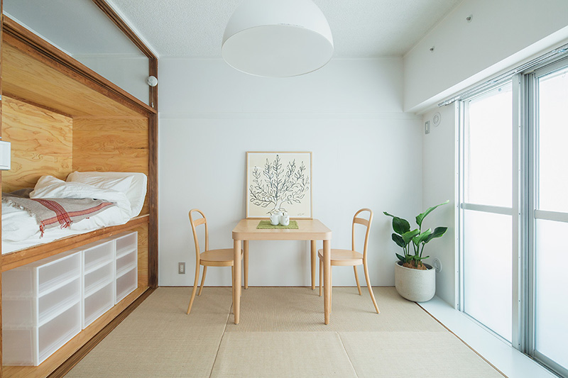 少しでも広々と暮らせるよう、押入の壁の一部を取り払い、ベッドにアレンジしました。