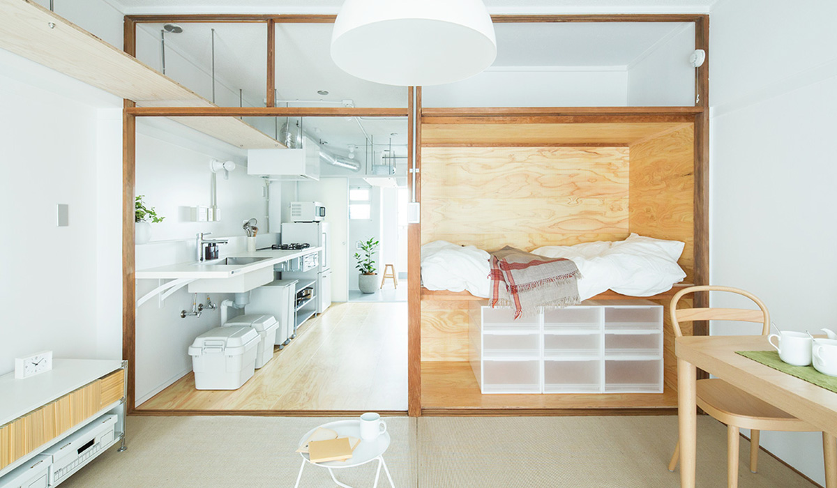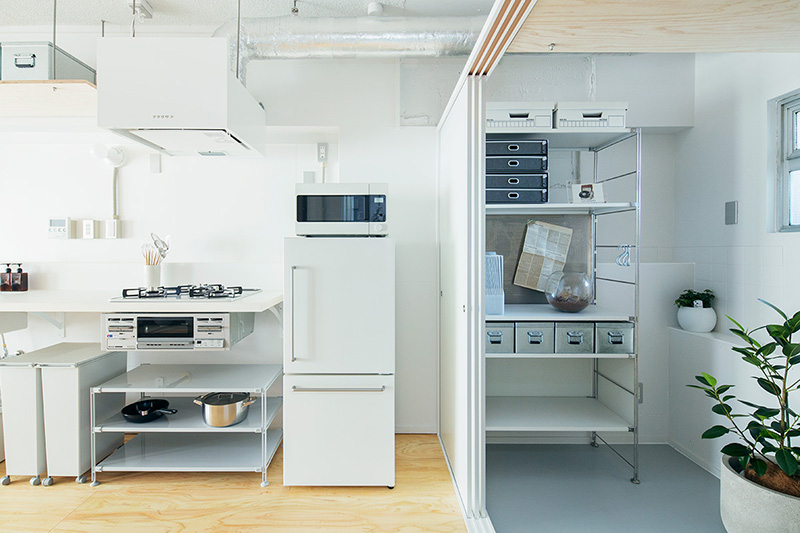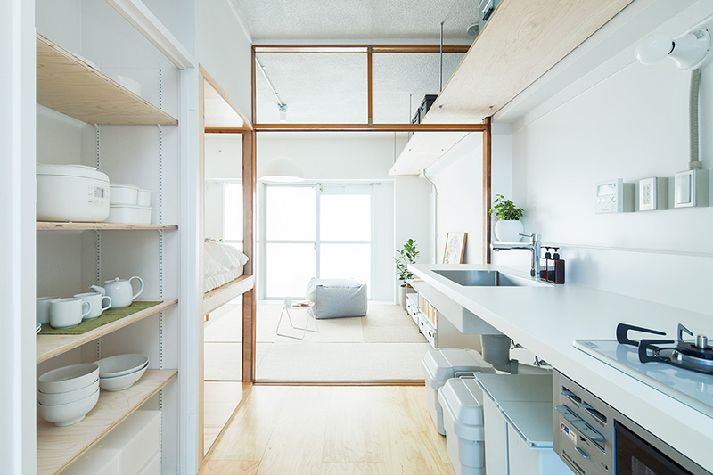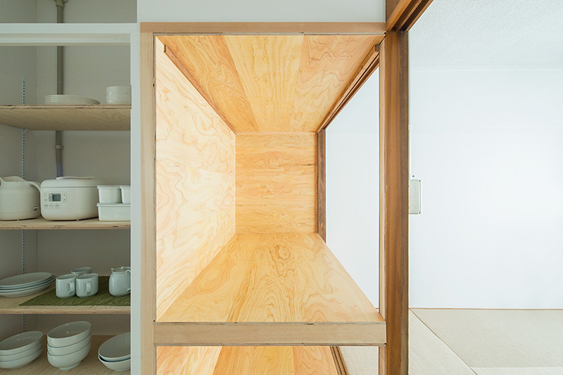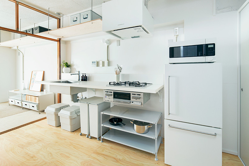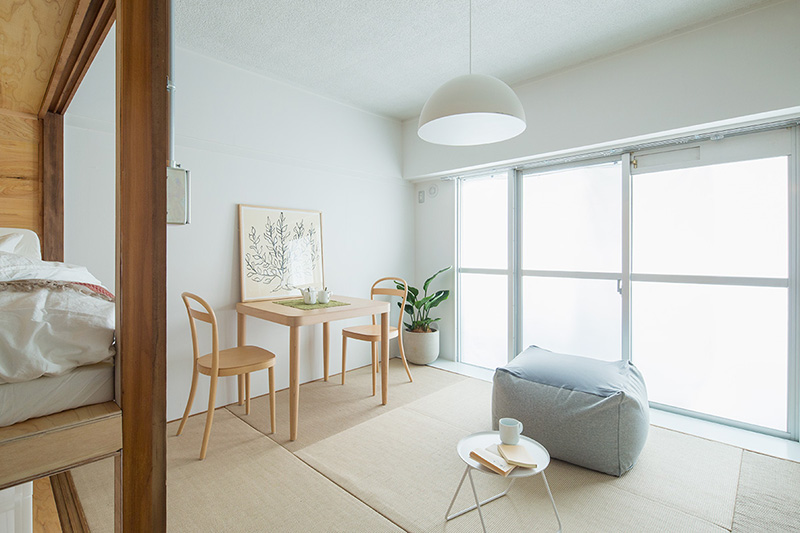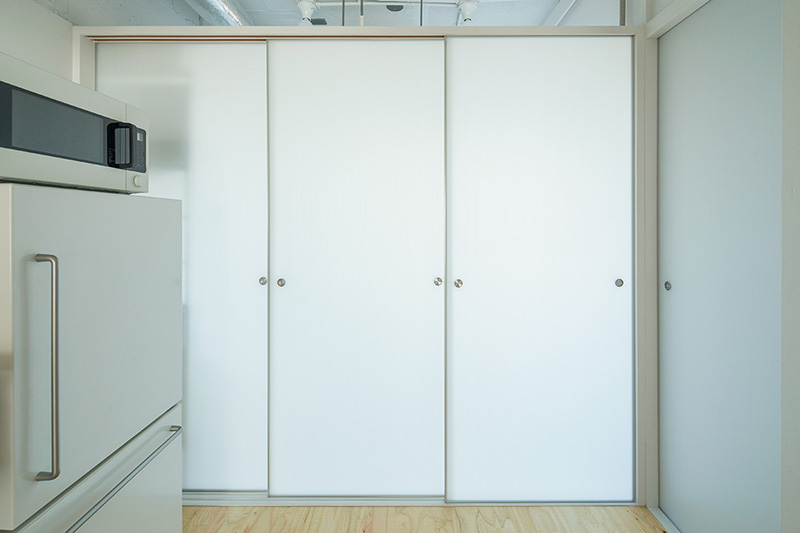 少しでも広々と暮らせるよう、押入の壁の一部を取り払い、ベッドにアレンジしました。