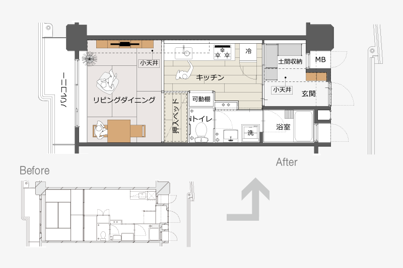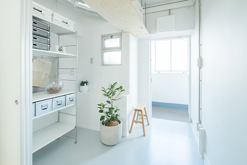 押入をなくした分もカバーできるよう、玄関土間を広げて、収納スペースを確保しました。