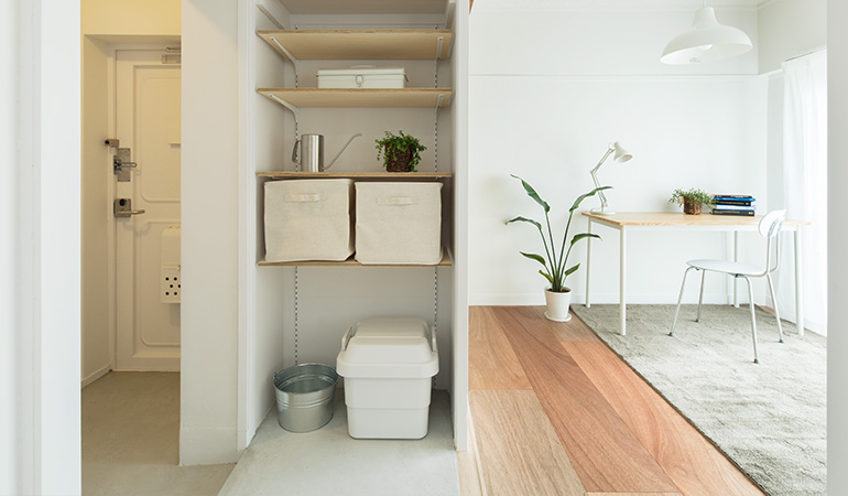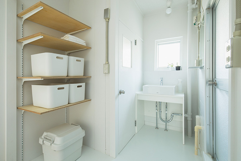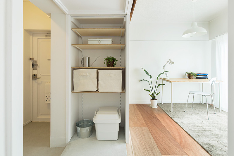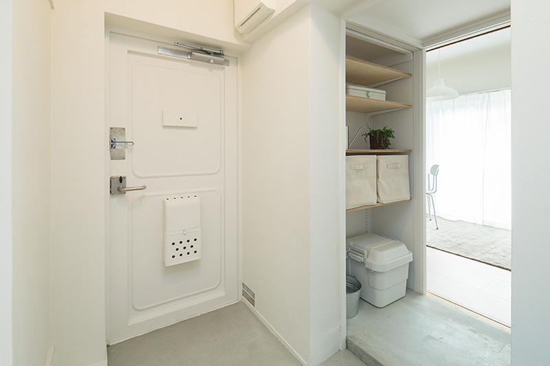 玄関の横には、可動棚のある収納スペースも設けました。