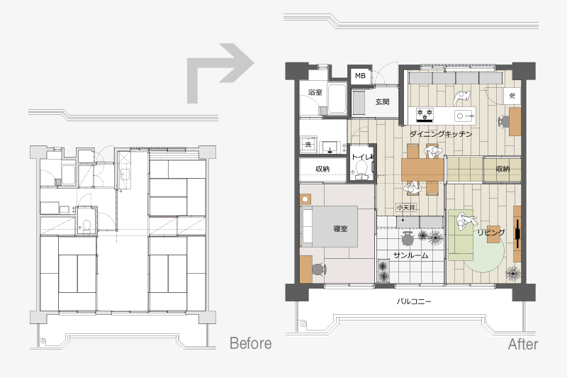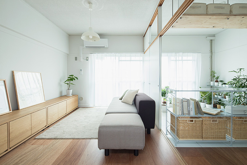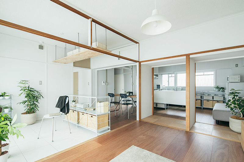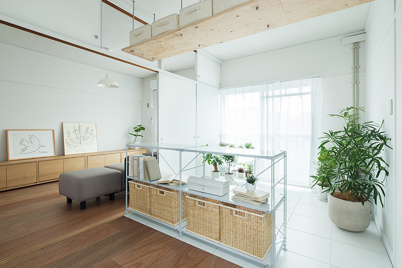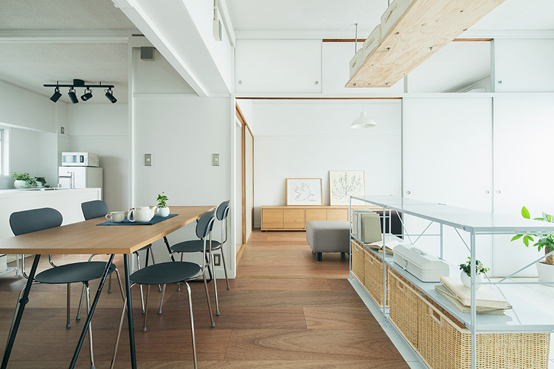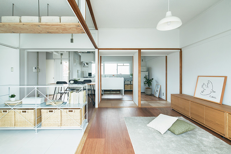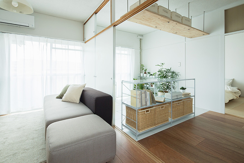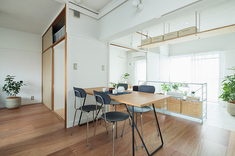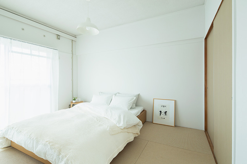 押入の壁を撤去することで、南北に風が通り抜ける空間となりました。両面からふすまを入れると収納としても使用できます。