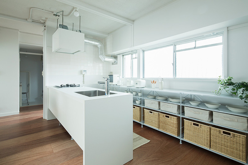 もとキッチンの横の和室を洋室化し空間をつなげることで、明るくて広い対面キッチンとしました。