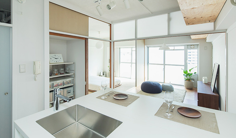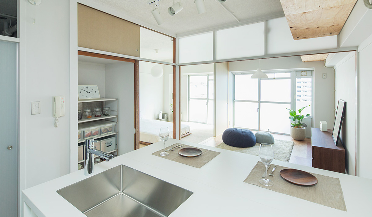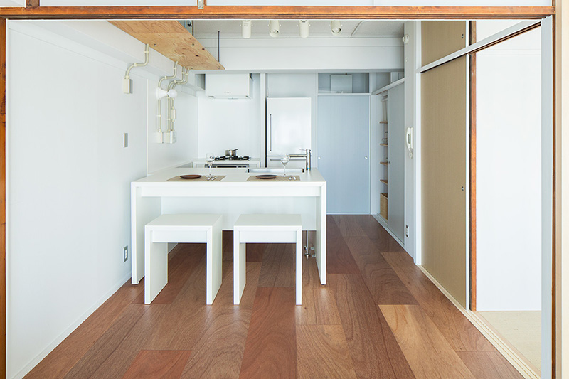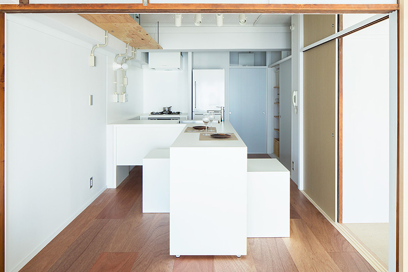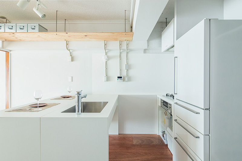 2列型+対面キッチンとすることで、限られたスペースの中でも充実した調理スペースを確保しました。