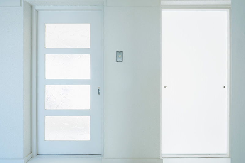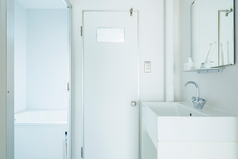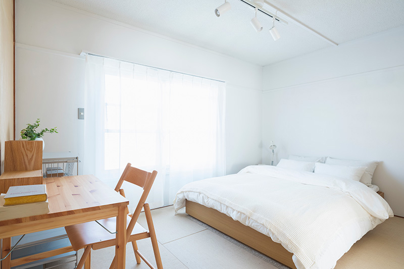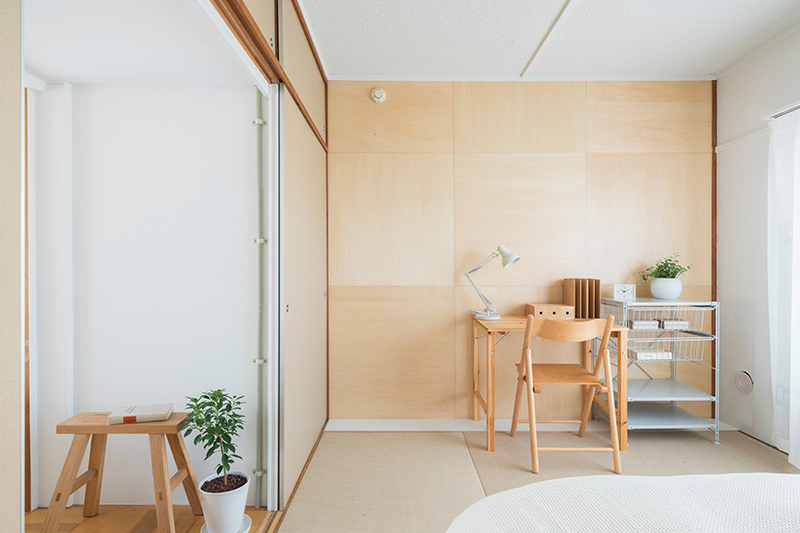 寝室の壁面は、シナ合板、ラワン合板、白樺合板と、住戸毎に質感を変え、3タイプのバリエーションを展開しています。