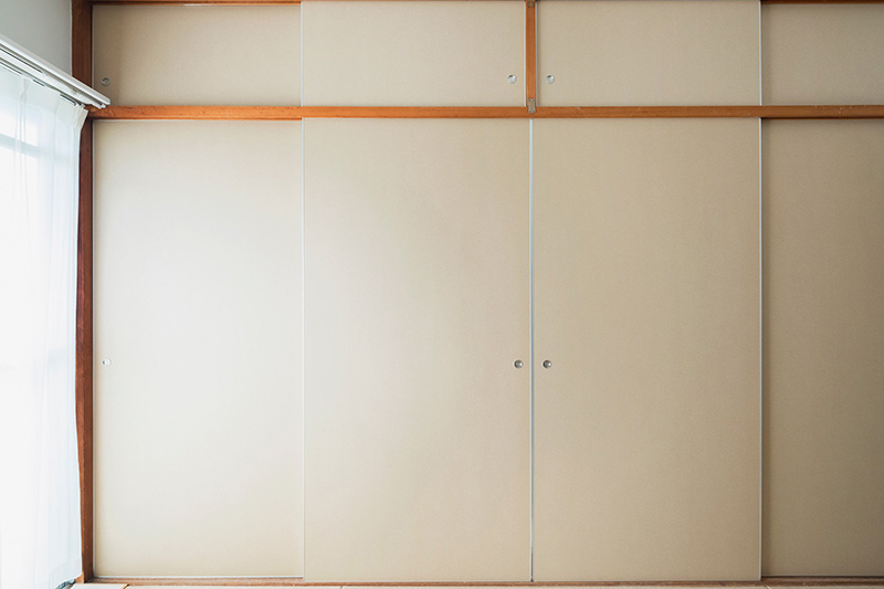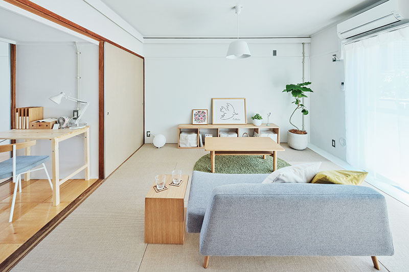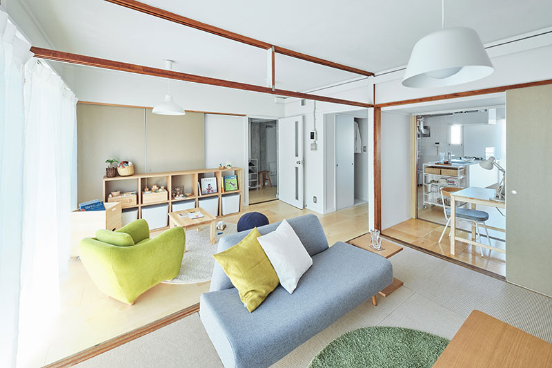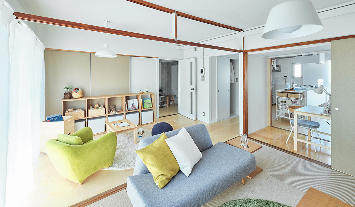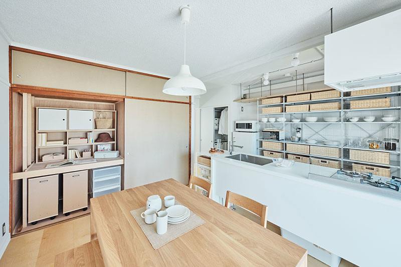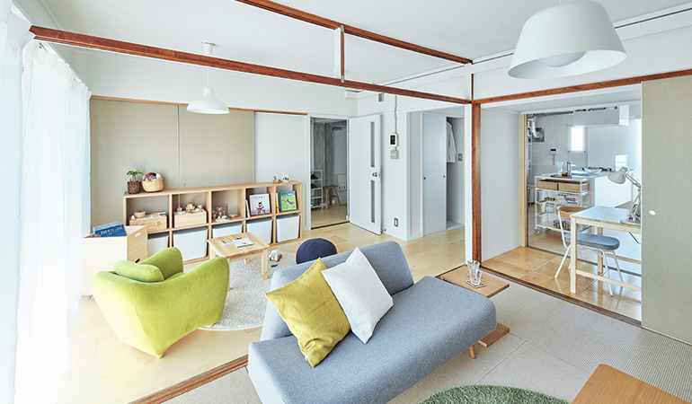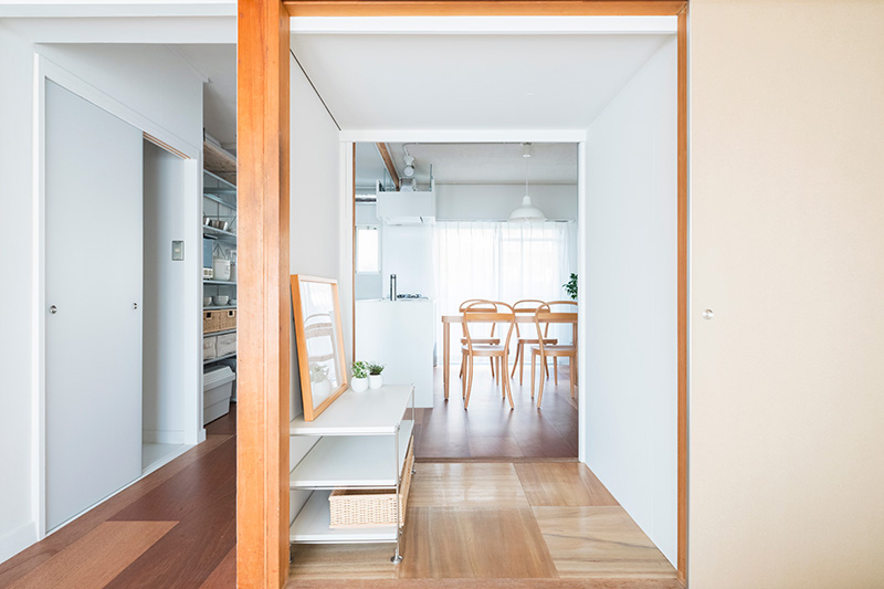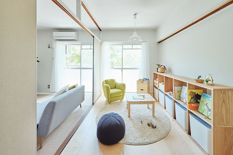 リビングの壁面にふすま専用の収納を設置し、家族構成やライフスタイルに合わせて、間取りを1LDK、2LDKと変化させることができます。