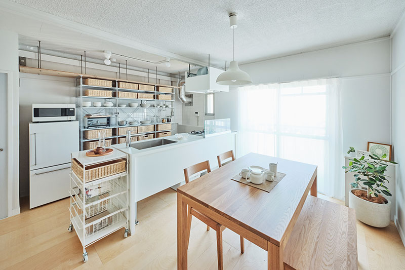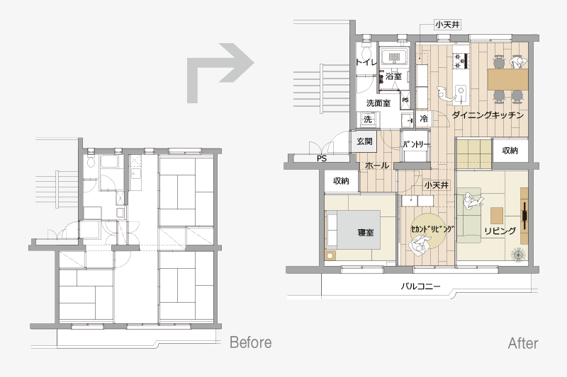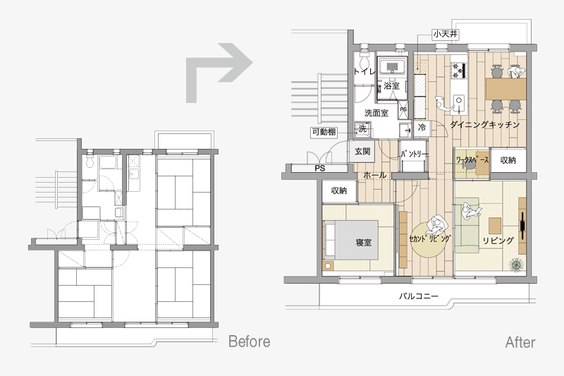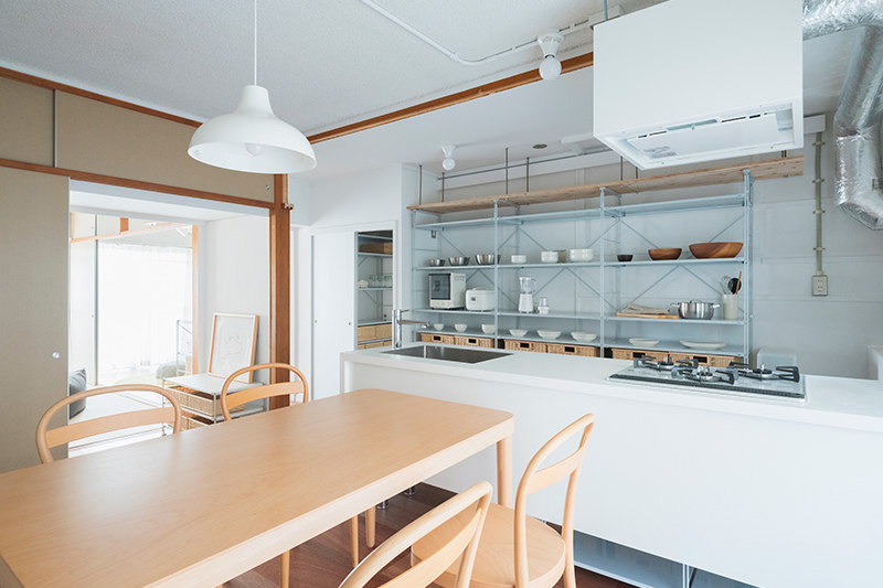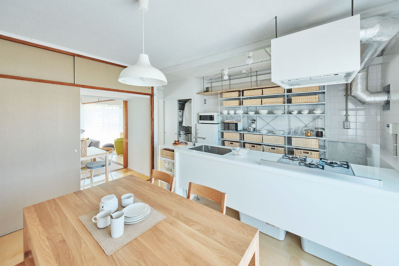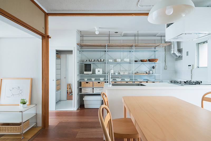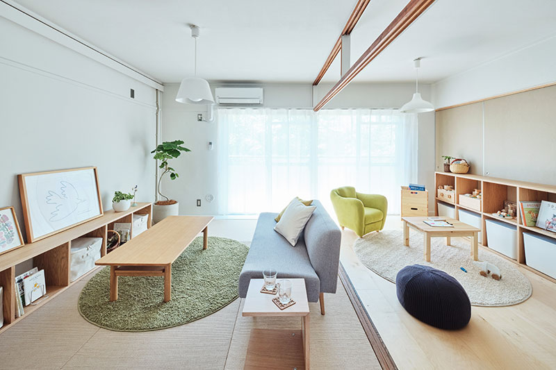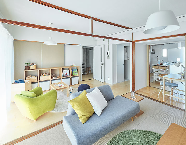 リビングの壁面にふすま専用の収納を設置し、家族構成やライフスタイルに合わせて、間取りを1LDK、2LDKと変化させることができます。