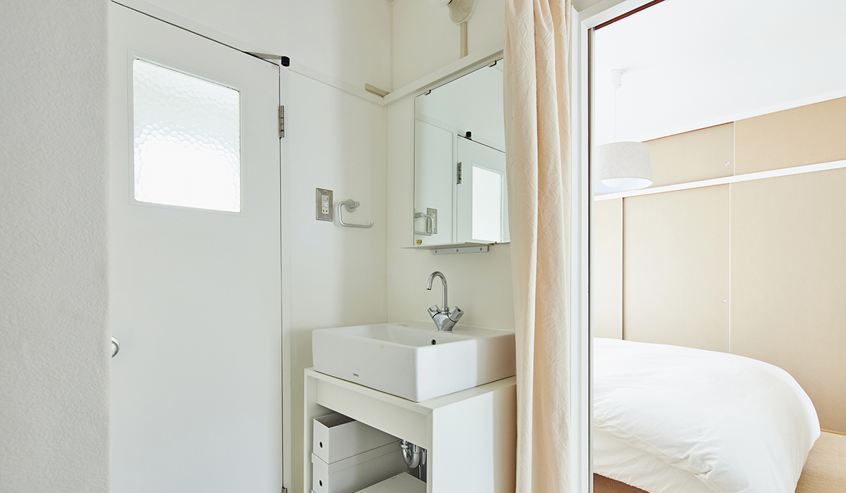 陶器のボウルに高圧メラミンをプレスしたパーティクルボードの作業台を組み合わせたオリジナルの洗面化粧台です。高圧メラミンは熱・汚れ・キズ・衝撃に強く、清掃性にも優れており、さっとひと拭きで美しさを保ちます。