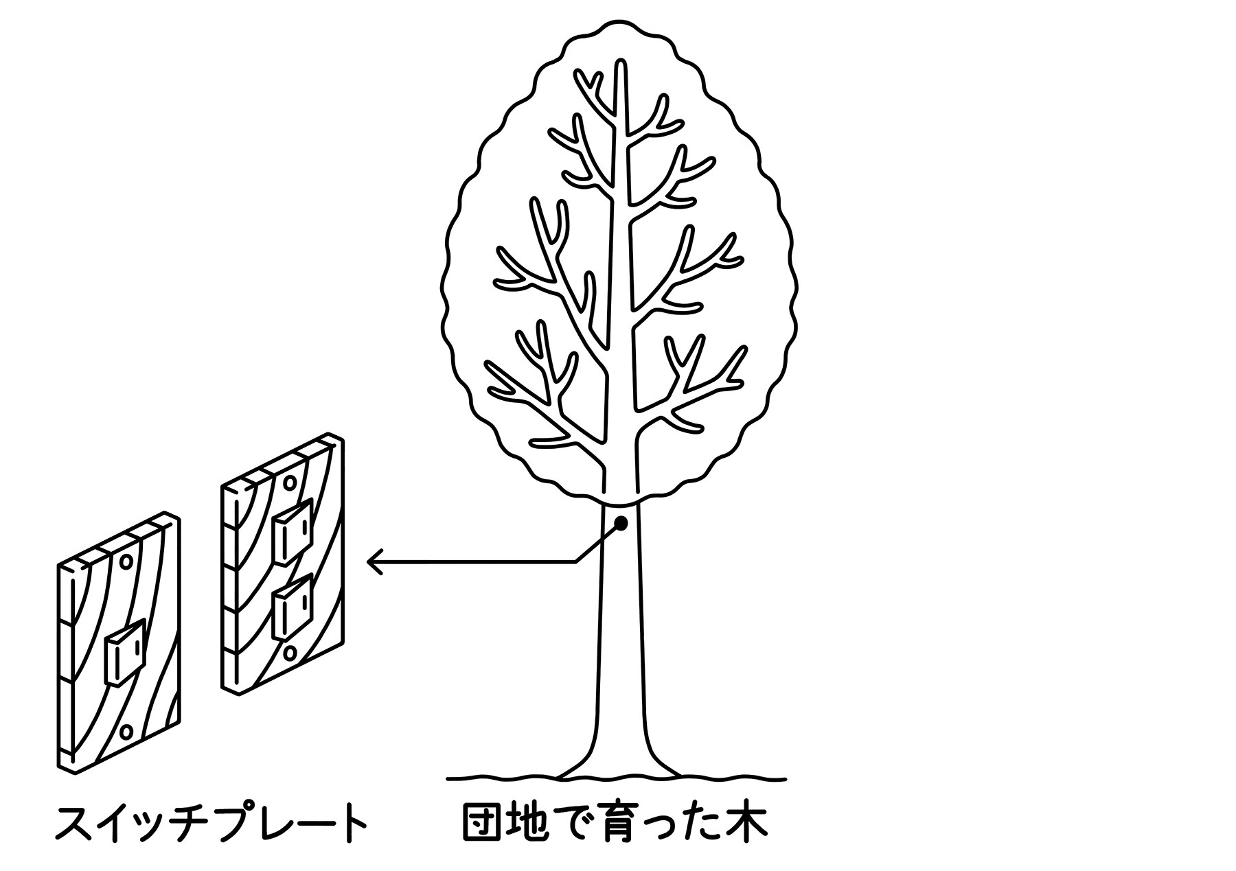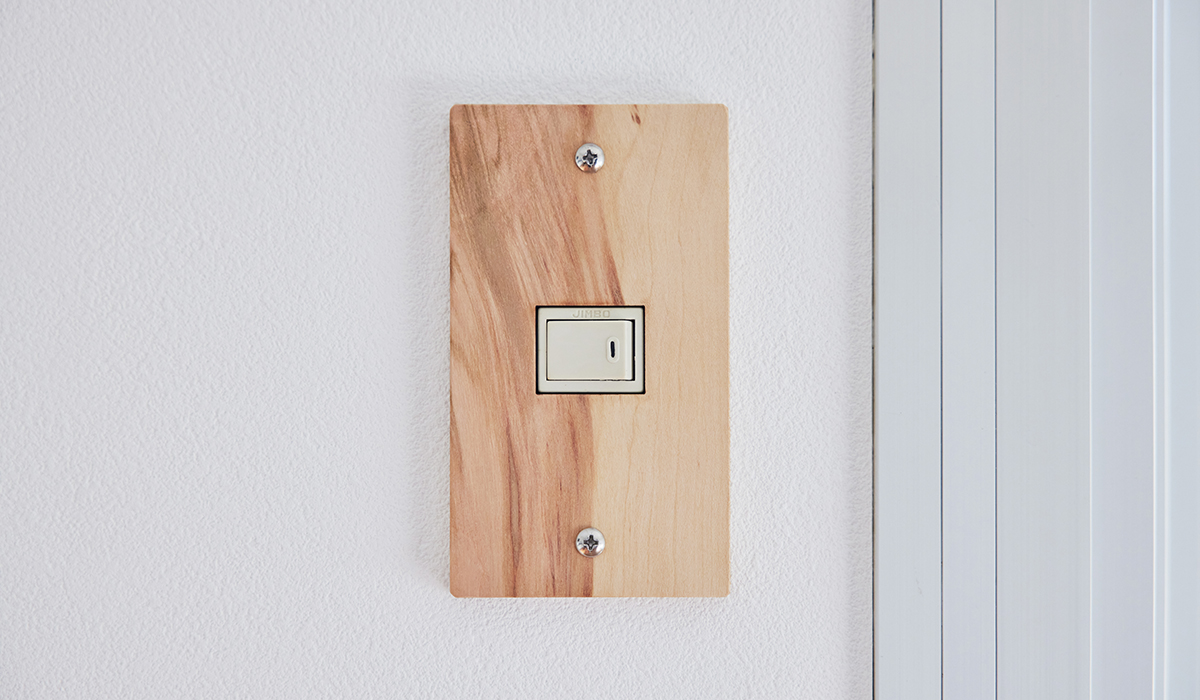団地で伐採された木や団地の古材を活用してスイッチプレートを作りました。