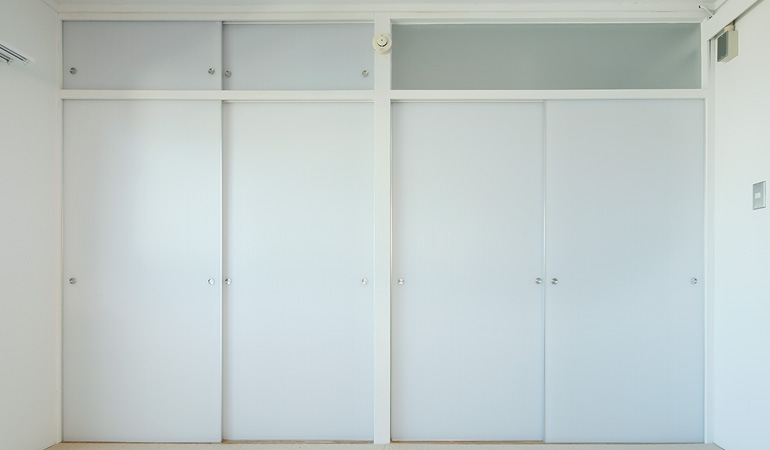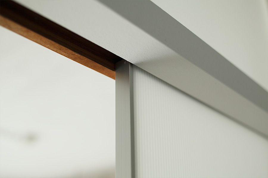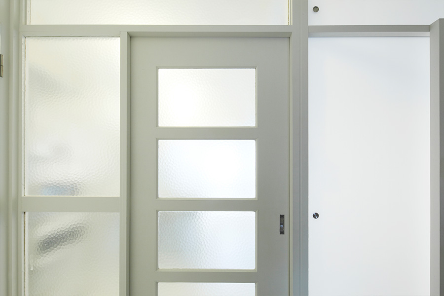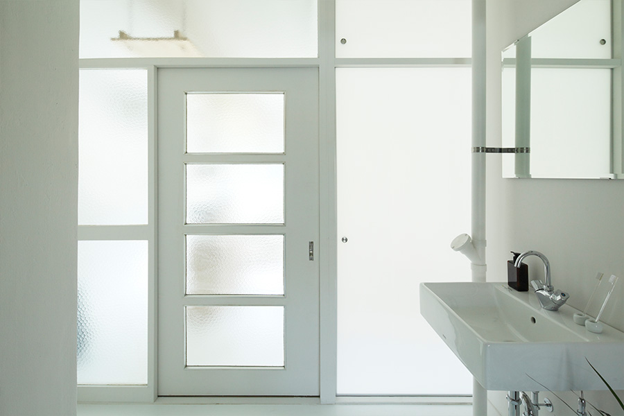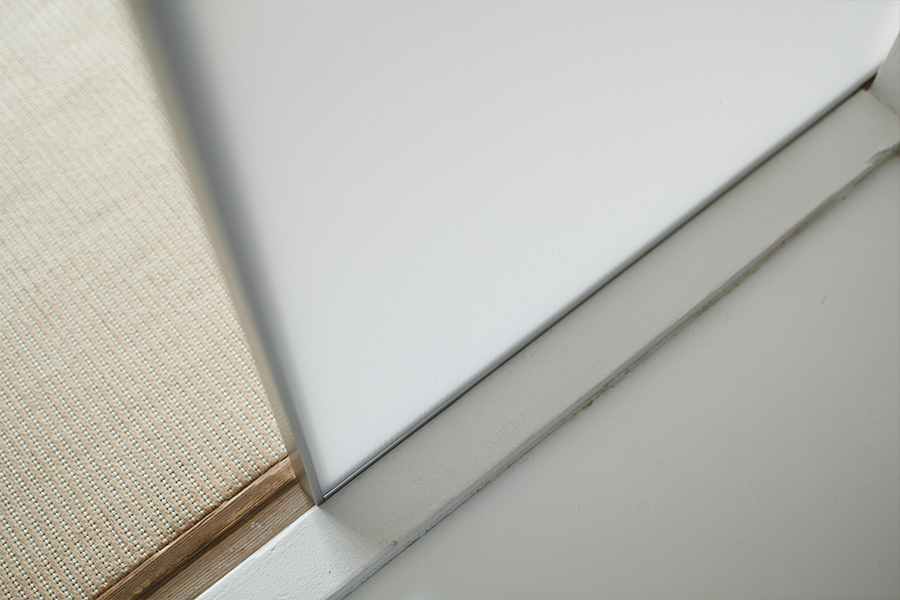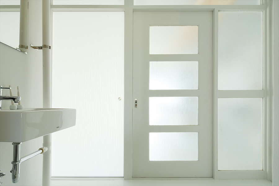 樹脂でできた半透明材に4方枠を取り付けることで建具としました。