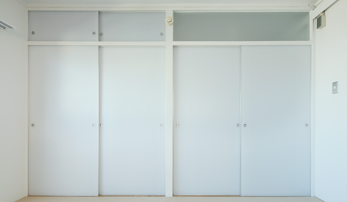 光を通す半透明の素材でできた、ふすま・らんまです。