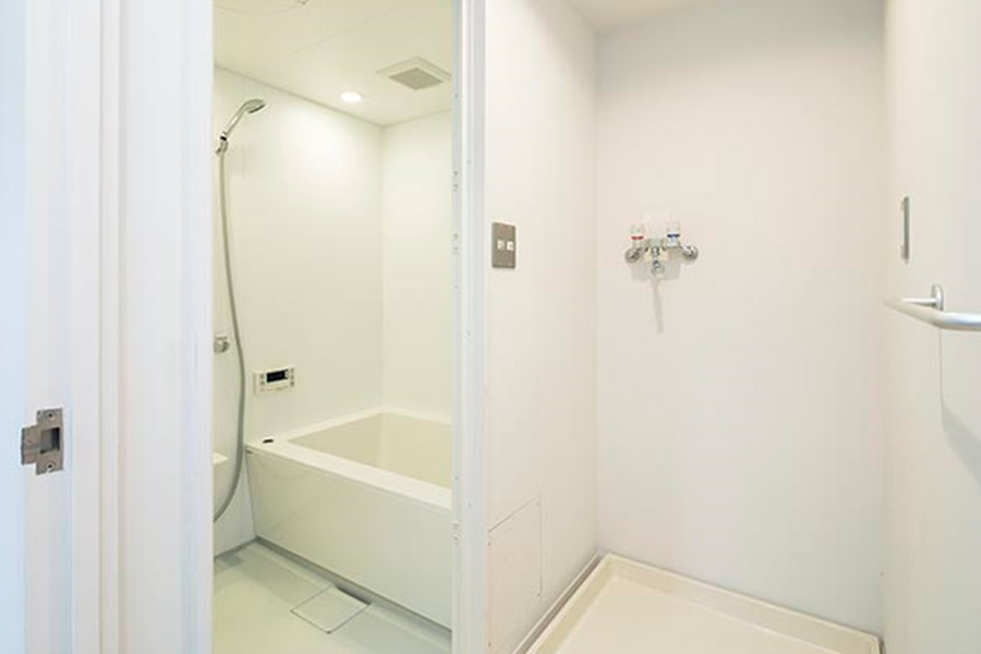 - 洗面は機能だけのシンプルなデザインとなっています。また、ユニットバスも新しく交換しています。白を基調としたシンプルなデザインです。