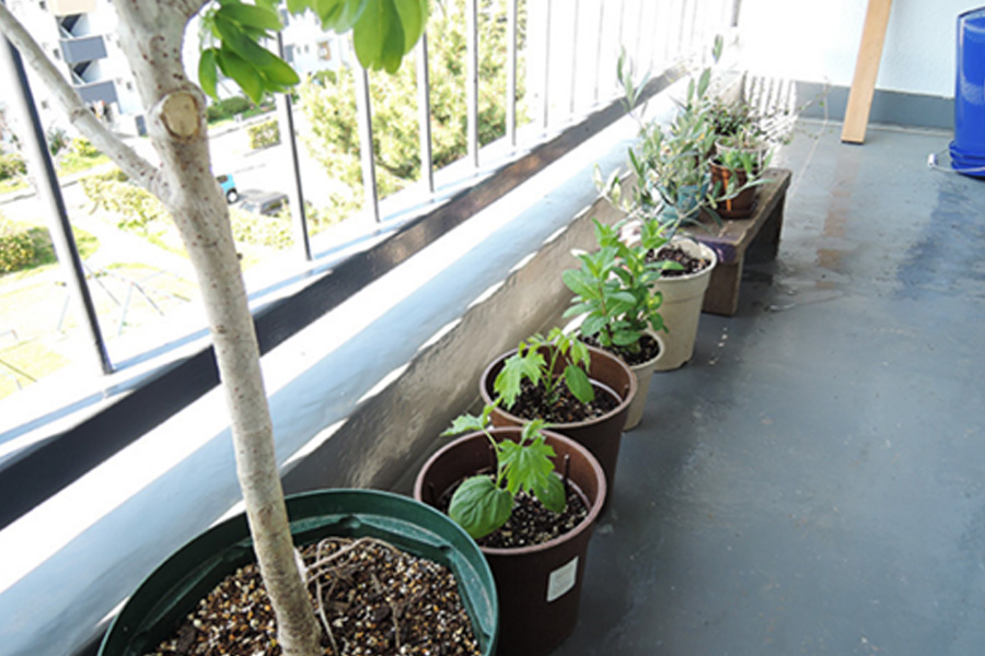 - 陽当たりの良さがうれしかったです。駅前で苗を購入してゴーヤやオリーブの木を育ててみたり、小さなサイズですが実ったゴーヤを収穫したりして、楽しんでいました。