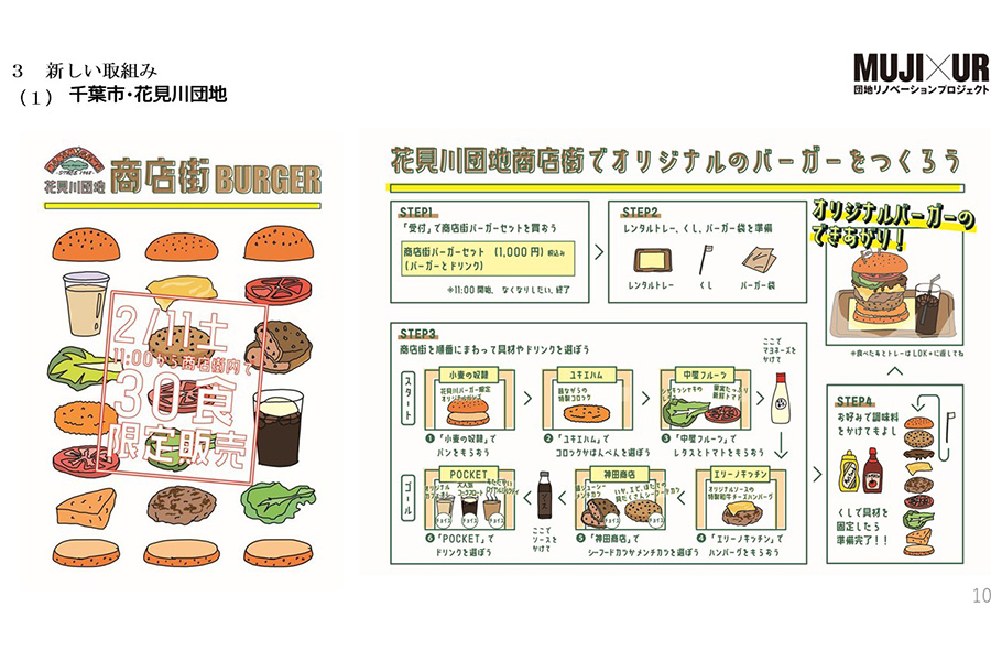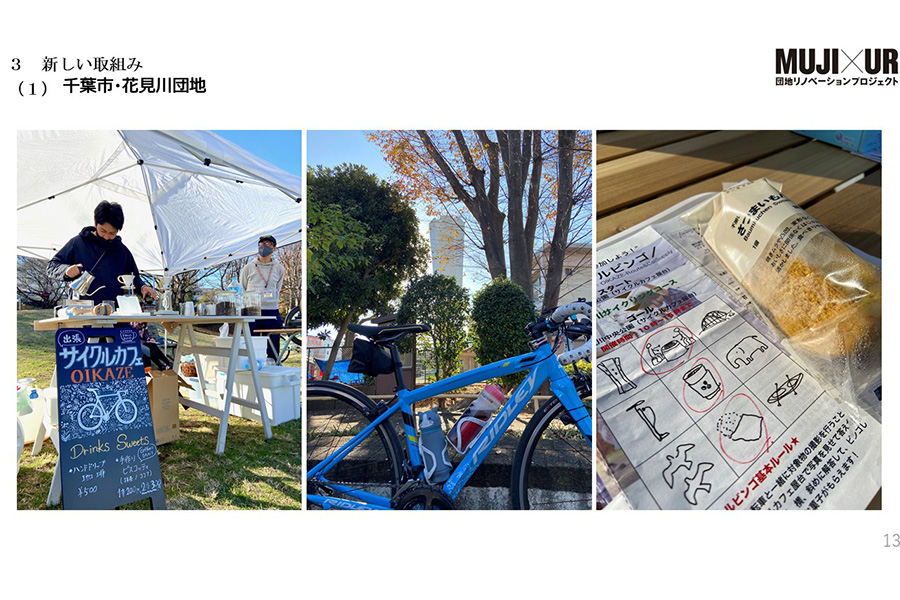 - このようなハードの設計をしていく中で大事なことはソフトの部分ですが、住民の方にも協力していただいて、団地商店街の未来を考えるワークショップを月に1度開催しています。住民の方も商店街の方々、URさん、学生さん、千葉市さん、メンバーを加えてワークショップをして団地の未来を見据えたいろいろなコンテンツを考えています。また毎週、無印良品のポップアップストアを行っており、物の販売もそうなのですが、しっかり住民の方とコミュニケーションを取っています。