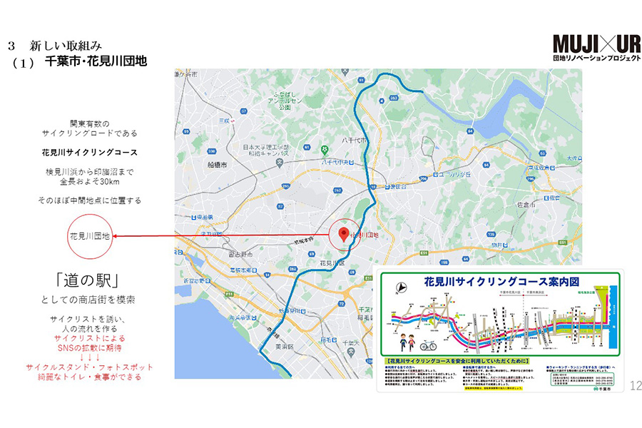 - また花見川沿いに千葉市さんが整備しているサイクリングコースがあります。ちょうど海から印旛沼の中間地点が花見川団地なので、ここを道の駅のようにサイクリストの方に立ち寄ってもらえるような取り組みもスタートしています。