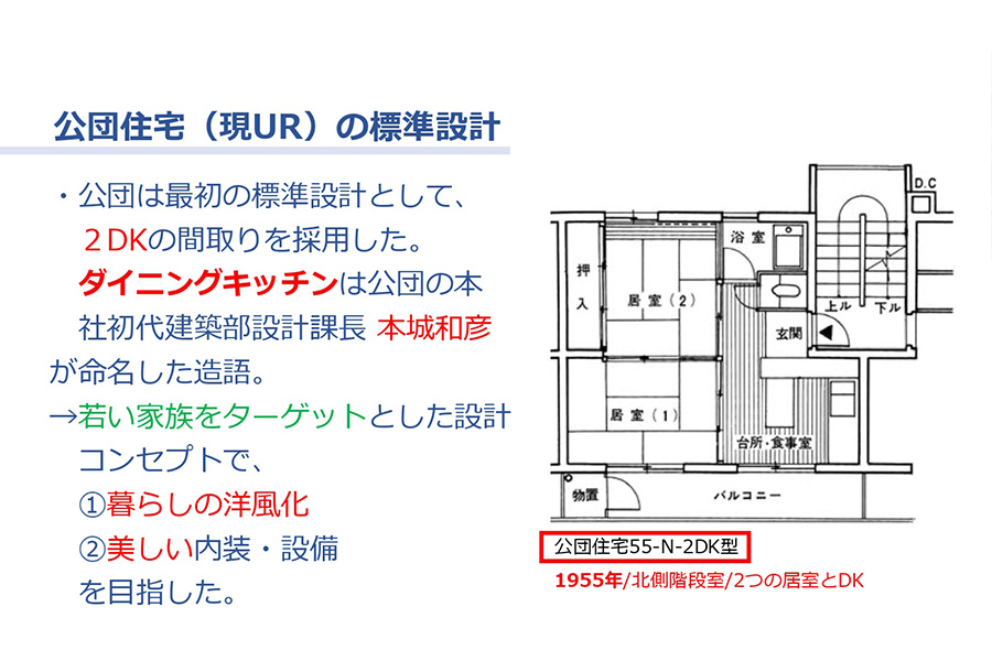 私に与えられたテーマは、“団地の暮らしや住まい方から見る間取りの変遷”です。