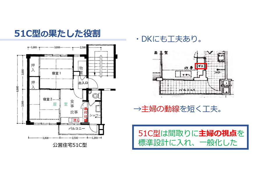 先ほどもお伝えしましたが、日本には大正時代から一生懸命主婦の動線を考える人たちがいたのですが、その考えを標準設計に入れたことで一気に日本中に広がり、一般化されました。「主婦の視点」が一般化した間取りとして、とても評価できると思っています。