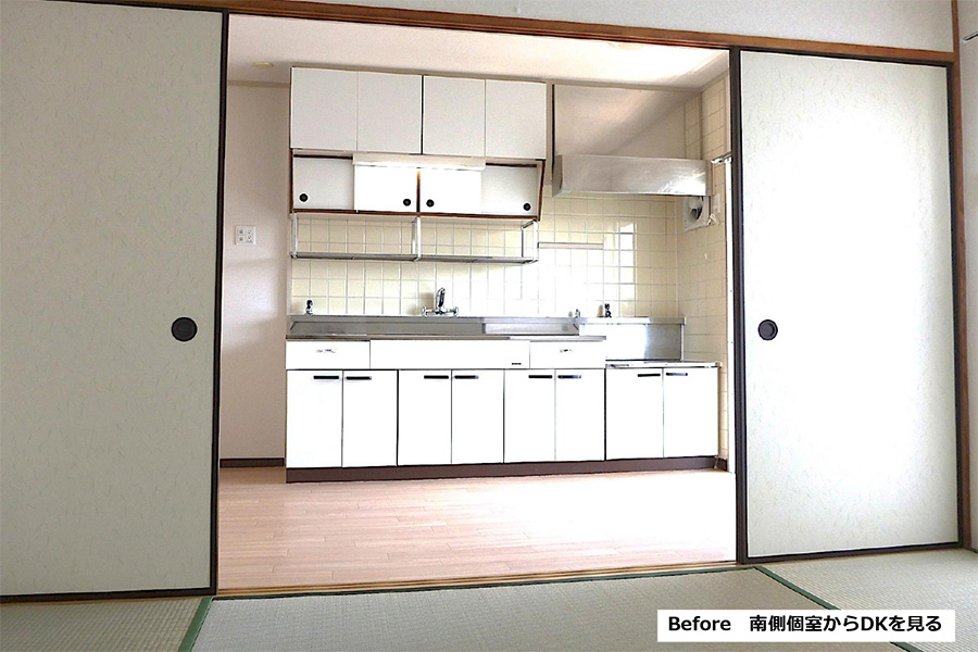 こちら側(図中②)も、こちら(右側;台所との境)にパネルをはめると、和室に付属する小さな空間になります。