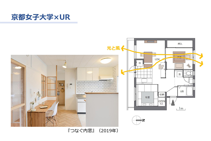 次にこちらの住戸ですが、2013年から京都の洛西ニュータウンの5団地で「京都女子大学×UR」というのをやっていて、学生がリノベーションしたものになります。