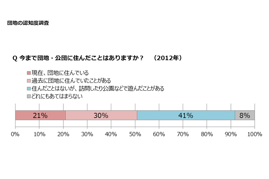 実際、住んでいる、住んだことがある、あるいは遊んだことがあると、何かしら団地に関わっているという方を全部含めると、9割以上の方が団地と何かしら関わりを持っていました。ある意味、住まいの原風景になっているのではないかなという風に感じました。