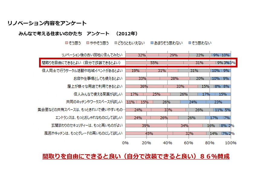 先ほど加納総裁や本城課長の話がありましたが、新しい住戸を考えるのは団地のカリスマの方にやっていただくと考え、どんどん進めるという方法もあると思いますが、無印良品の場合、非常にたくさんのお客さまがいらっしゃいます。