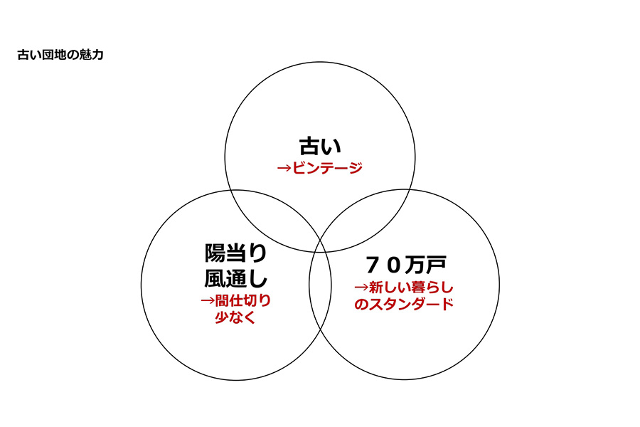 一方で、古い団地の魅力についてです。築40~50年という古い団地をリノベーションし、若い方に団地に住んでもらおうということでスタートしたのがこのプロジェクトです。