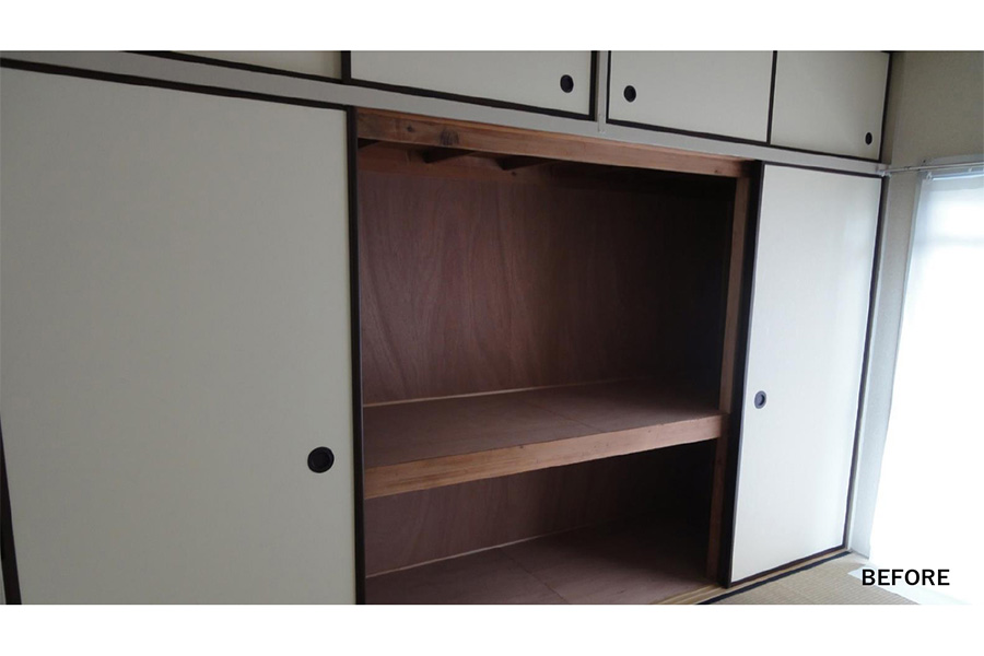 団地の特徴である押入れも、どのように生かしていこうかと考えました。中棚を取り、居室の延長として使えるようにもできますし、家具を置けば収納としても使えたり、色々な使い方が出来るようになるのではないか?と考えていきました。