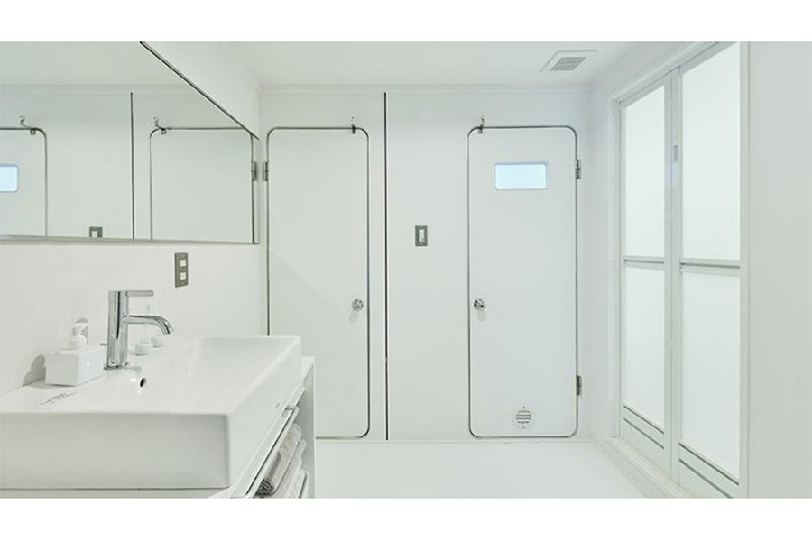 - あと、トイレの扉です。こちらの扉は、URさんの中では「潜水艦」と呼ばれているのですが、なかなか今では見ないですよね。次の世代に引き継いでいったら面白いんじゃないかということで、きれいに白く塗装はするのですが、ドアノブはそのまま残します。こういったものは、どんどん残していきました。